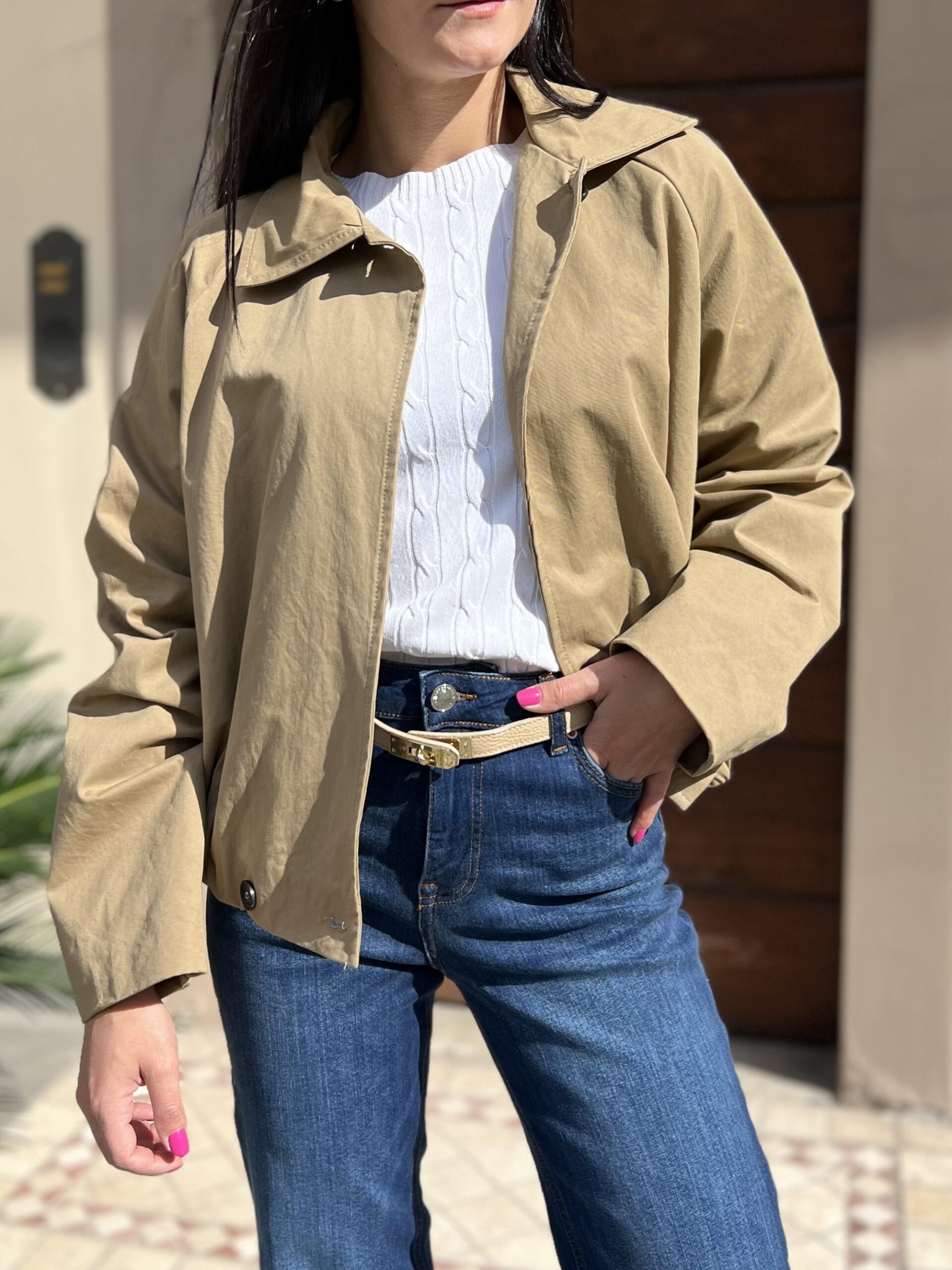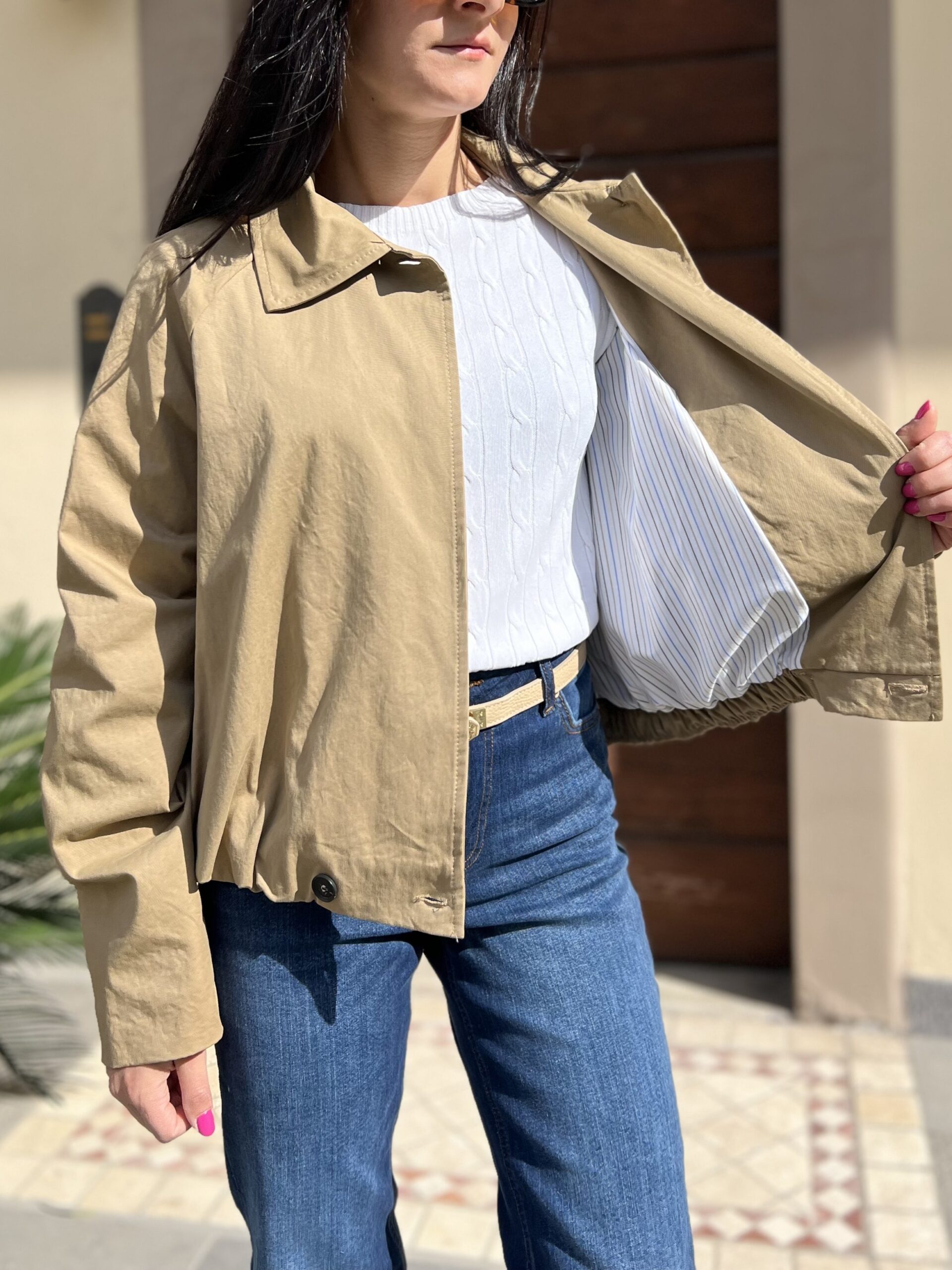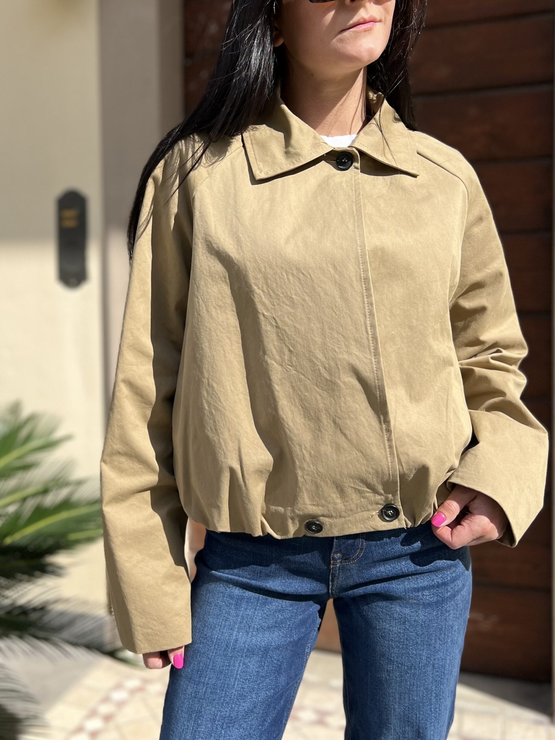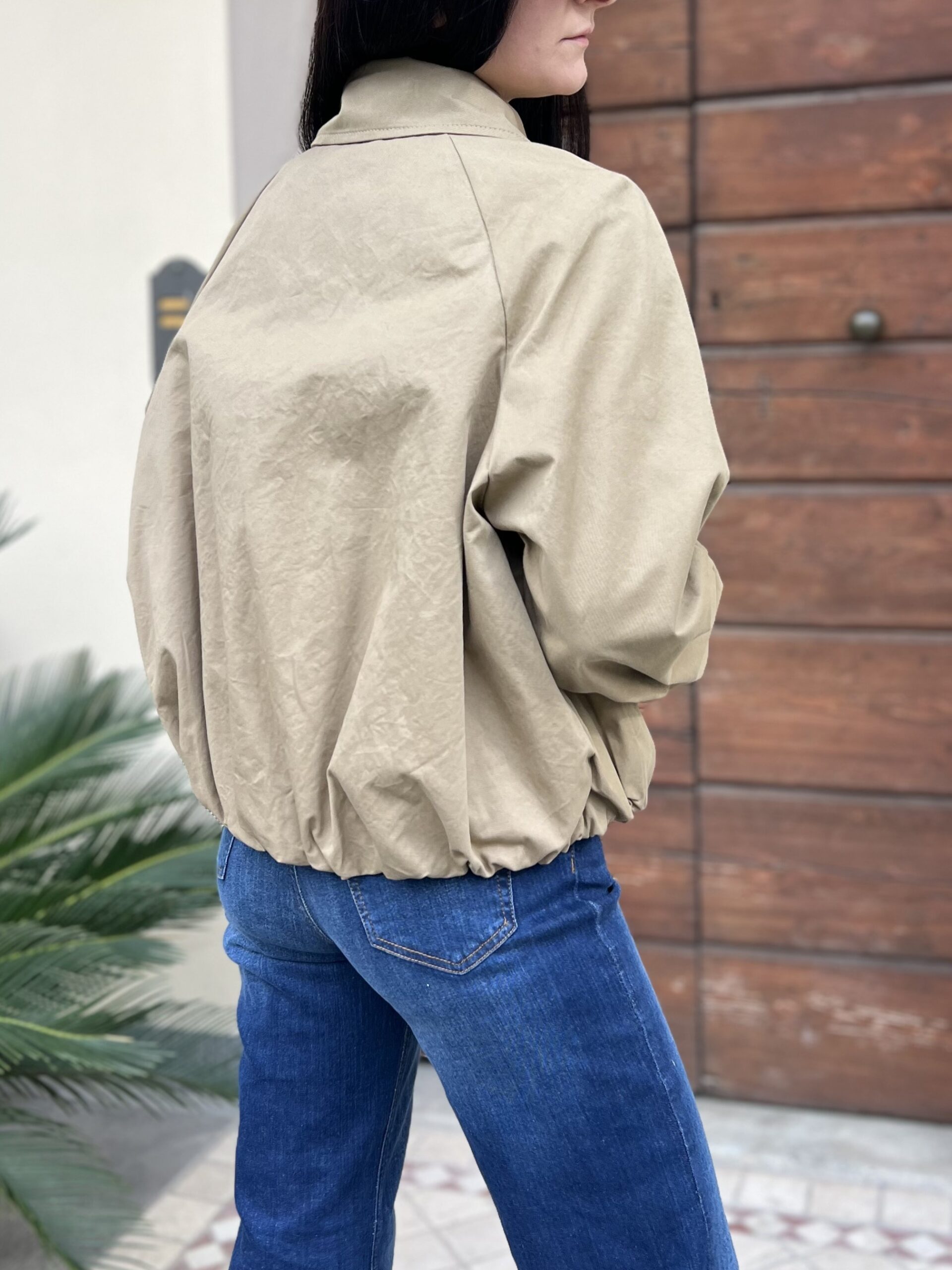 Bomber foderato in cotone , modello arricciato sul fondo con colletto e doppio bottone in chiusura. Taglia S per 40/42 e M per 44.