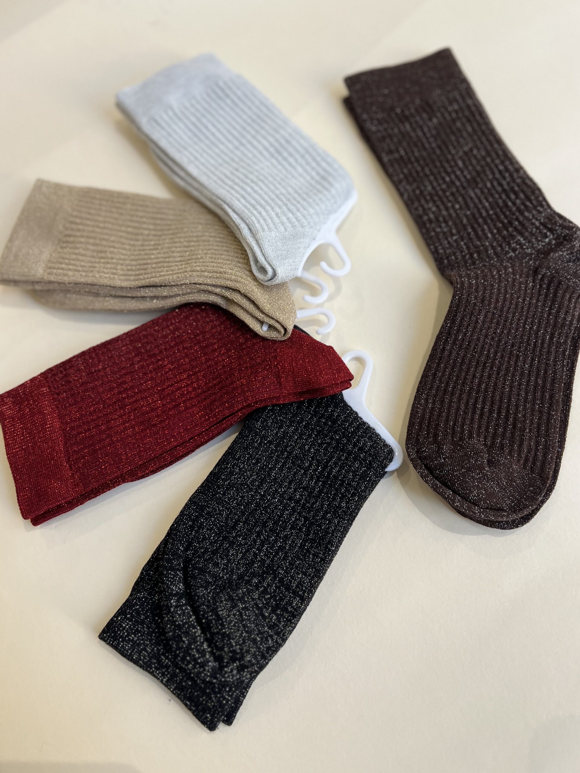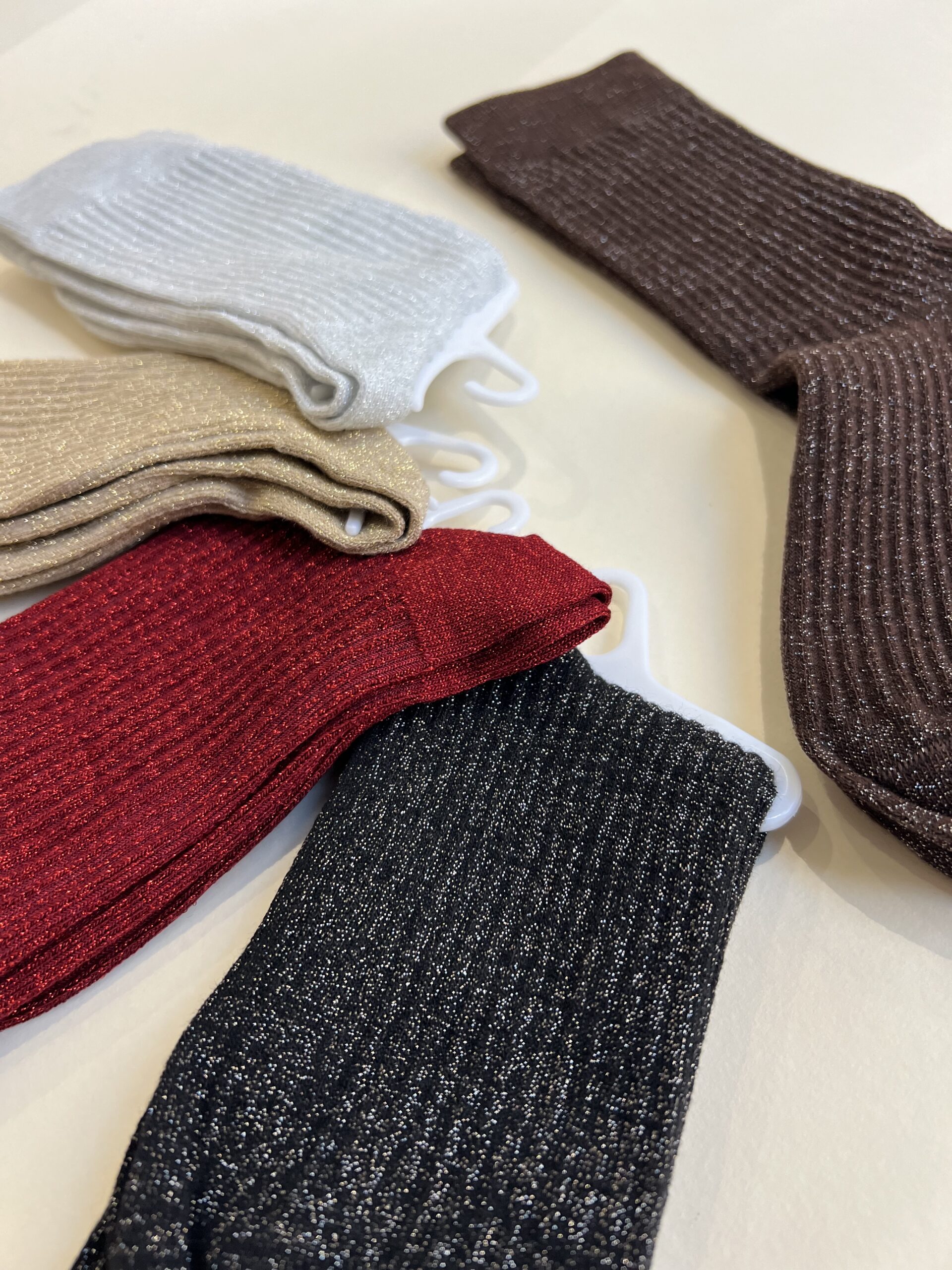Calze in caldo cotone e lurex, modello tinta unita in taglia unica (36-41).