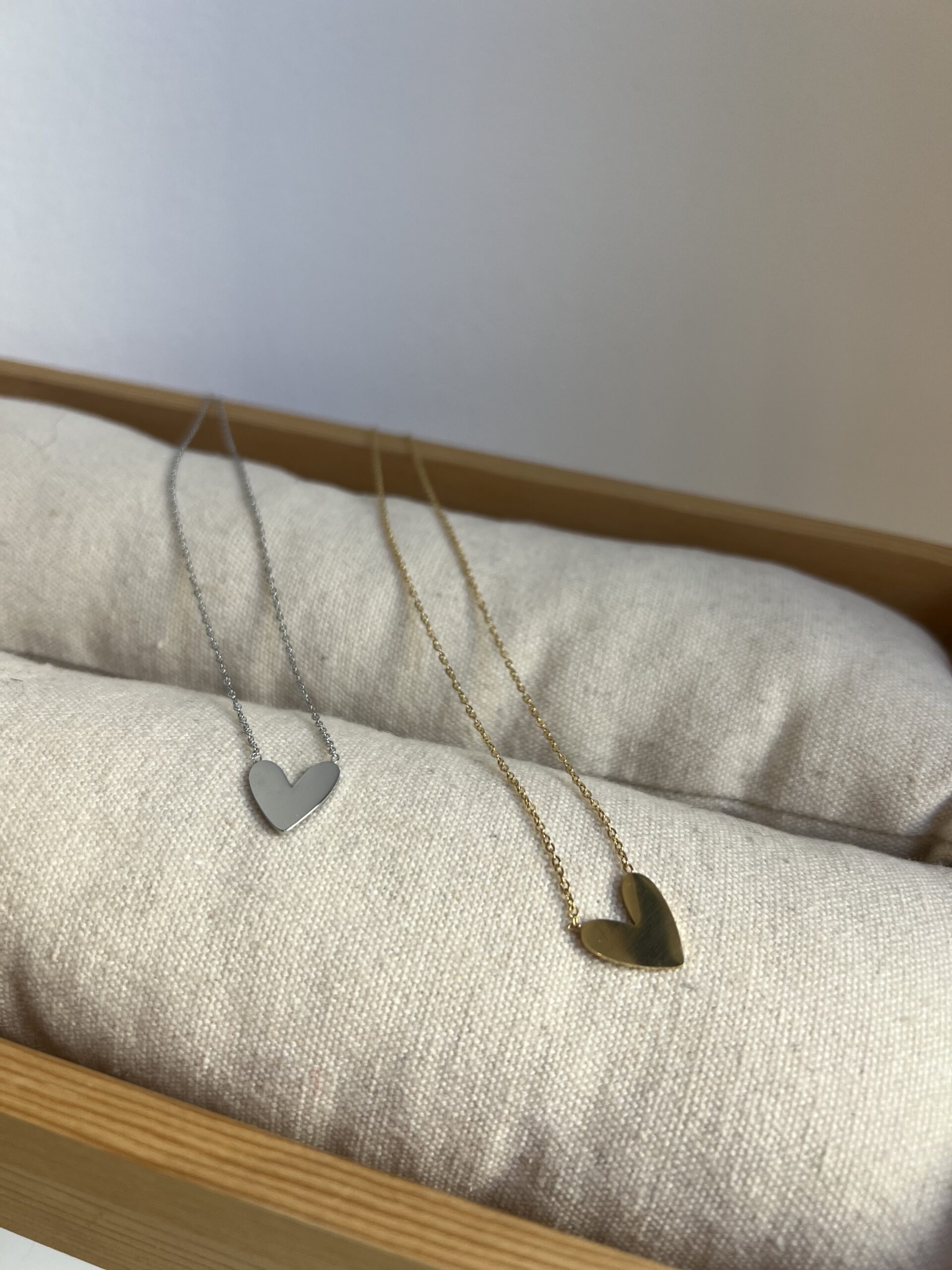 Collana in acciaio, modello con ciondolo a cuore con chiusura regolabile.