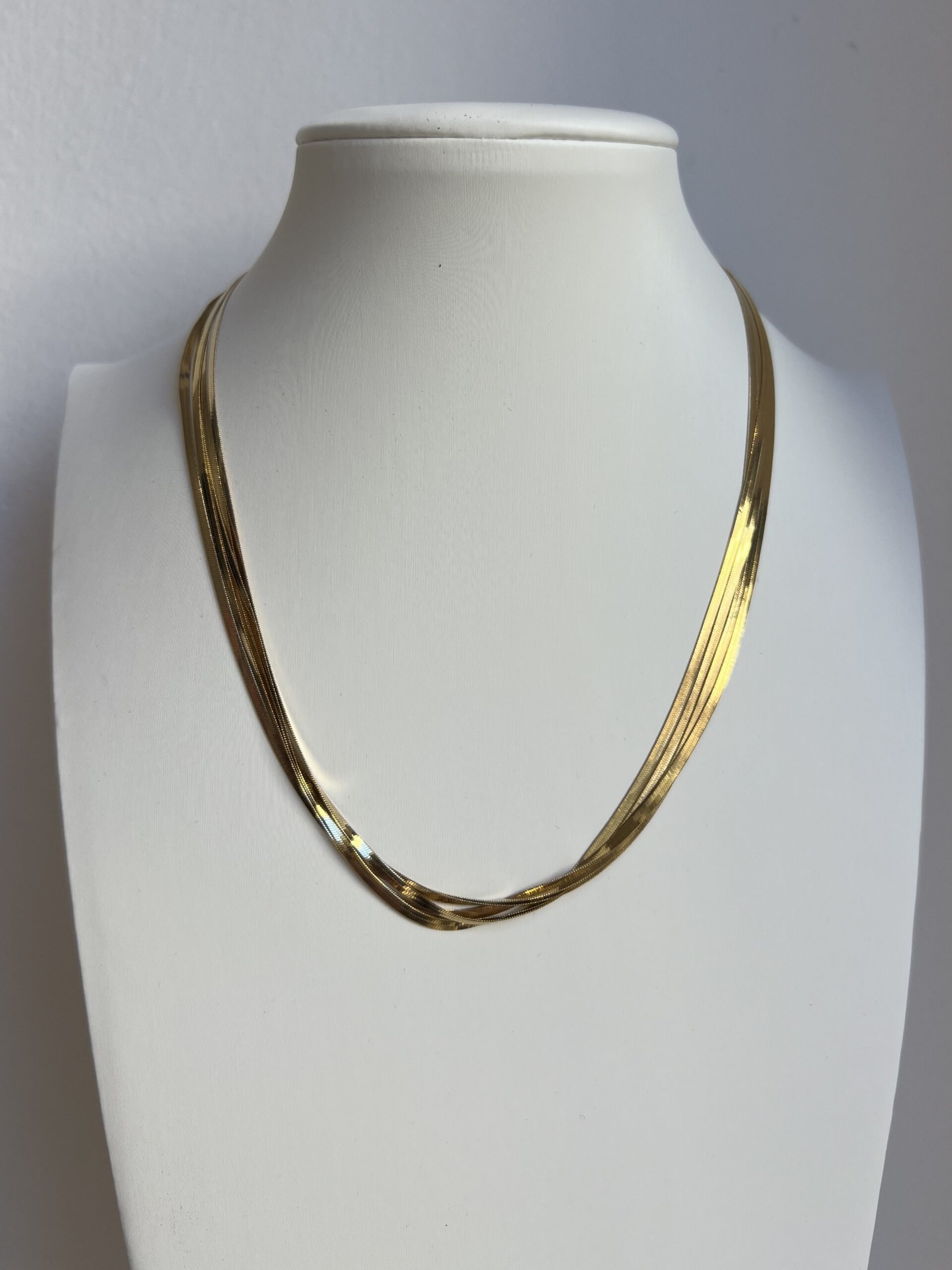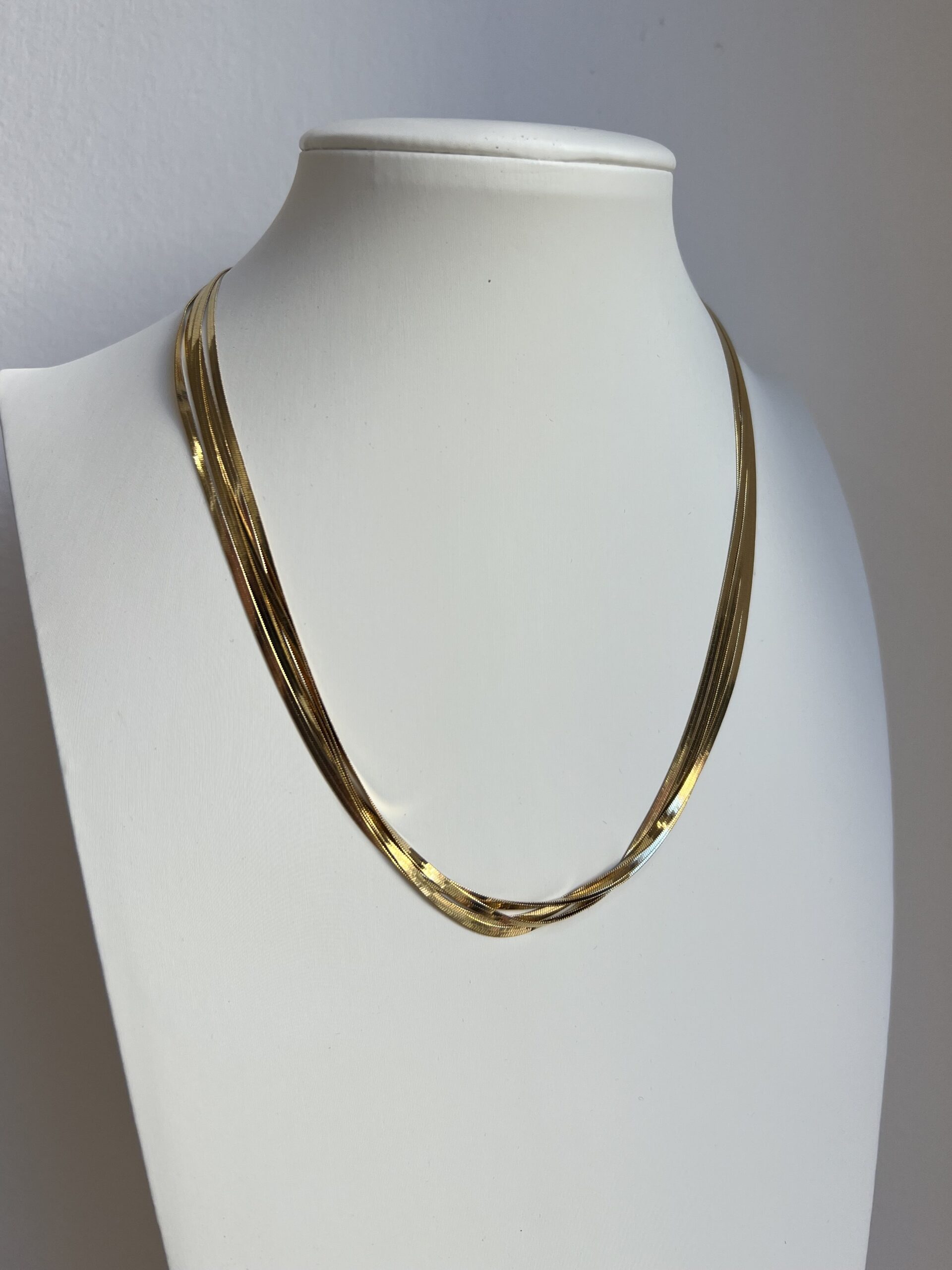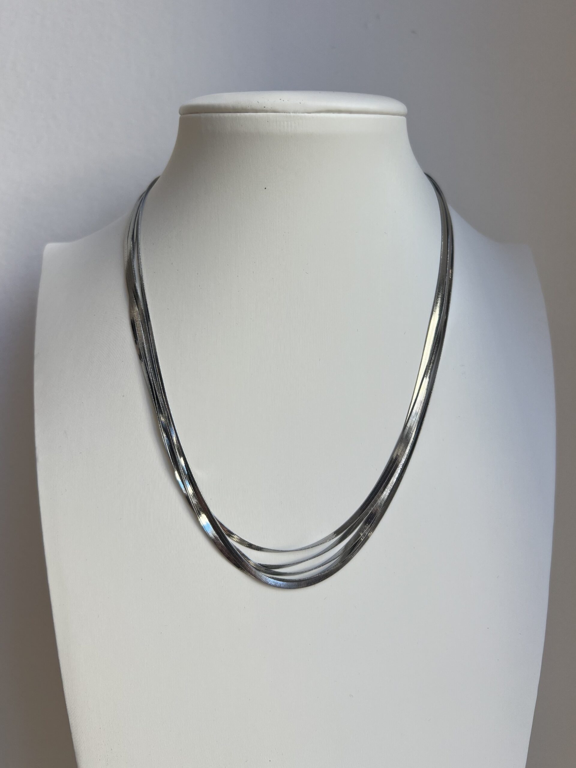 Collana in acciaio, modello multi-filo con chiusura regolabile.