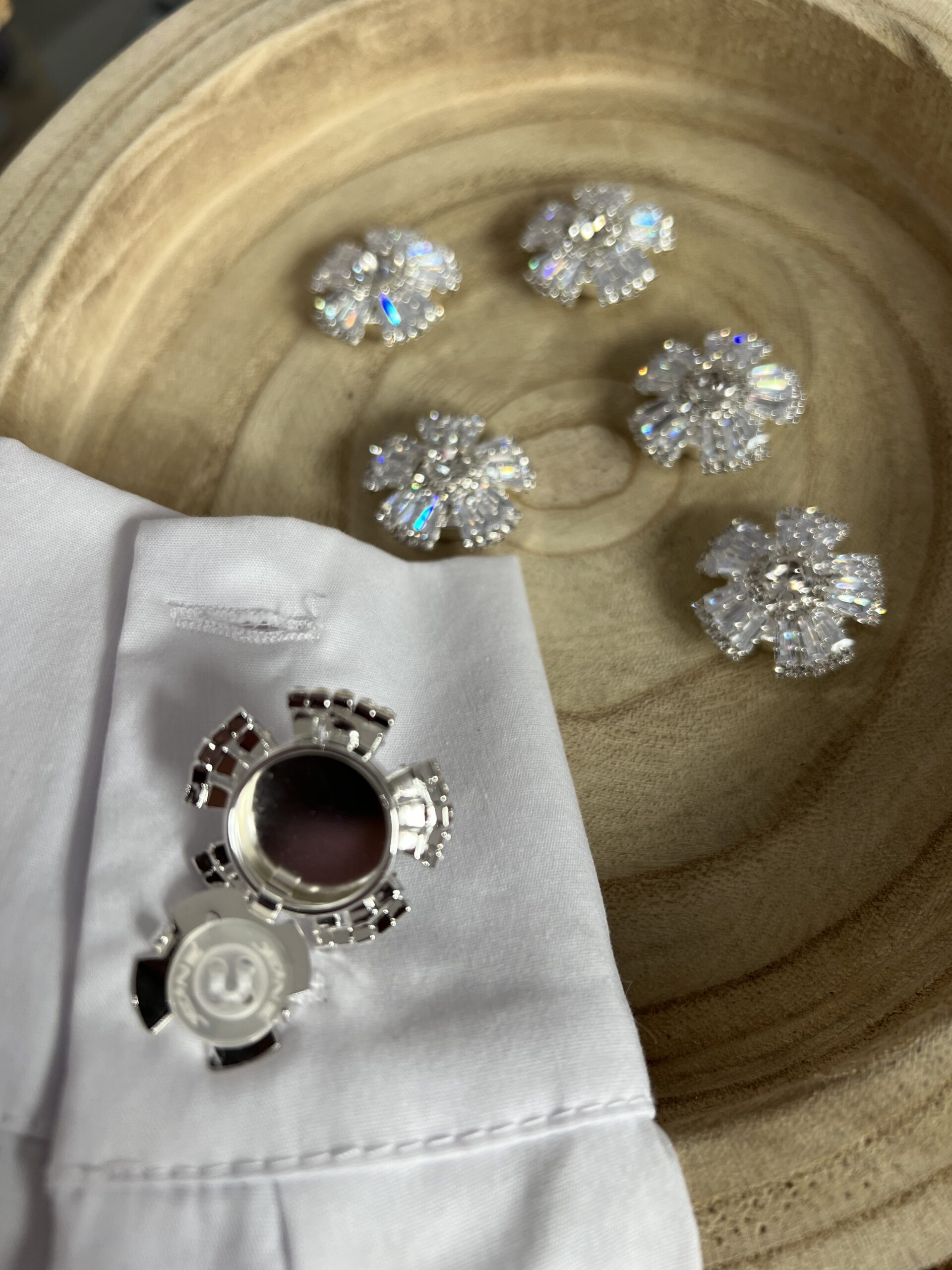 Copri-bottone da applicare ai classici bottoni per impreziosire camicie e non solo. Set composto da sei pezzi.