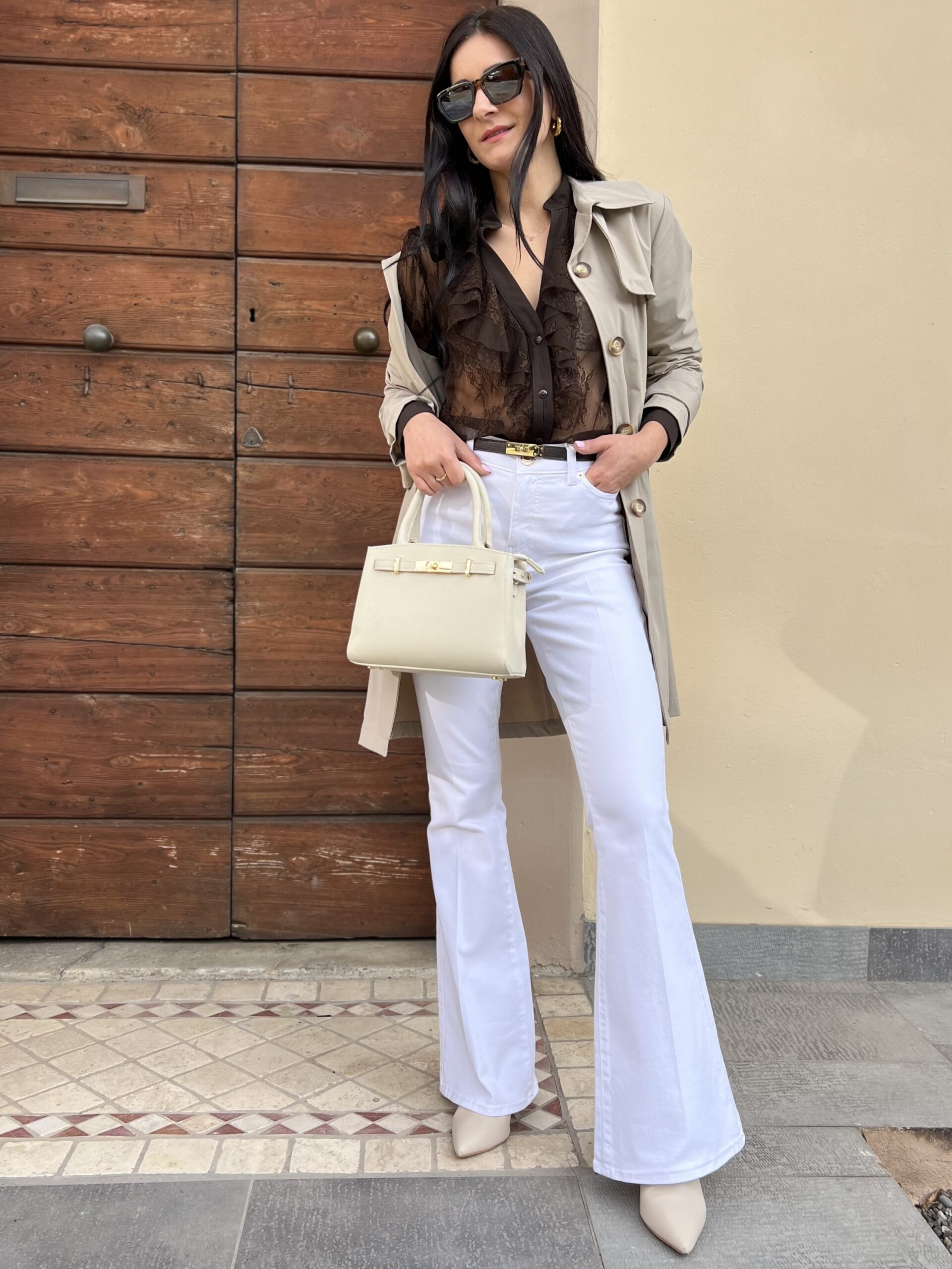 Pantalone in drill di cotone elasticizzato, modello a vita alta bianco con classiche cinque-tasche. Vestibilità ampia, consigliata una taglia in meno (due americane). Per calcolare la taglia europea, aggiungere +14 alla taglia americana.
