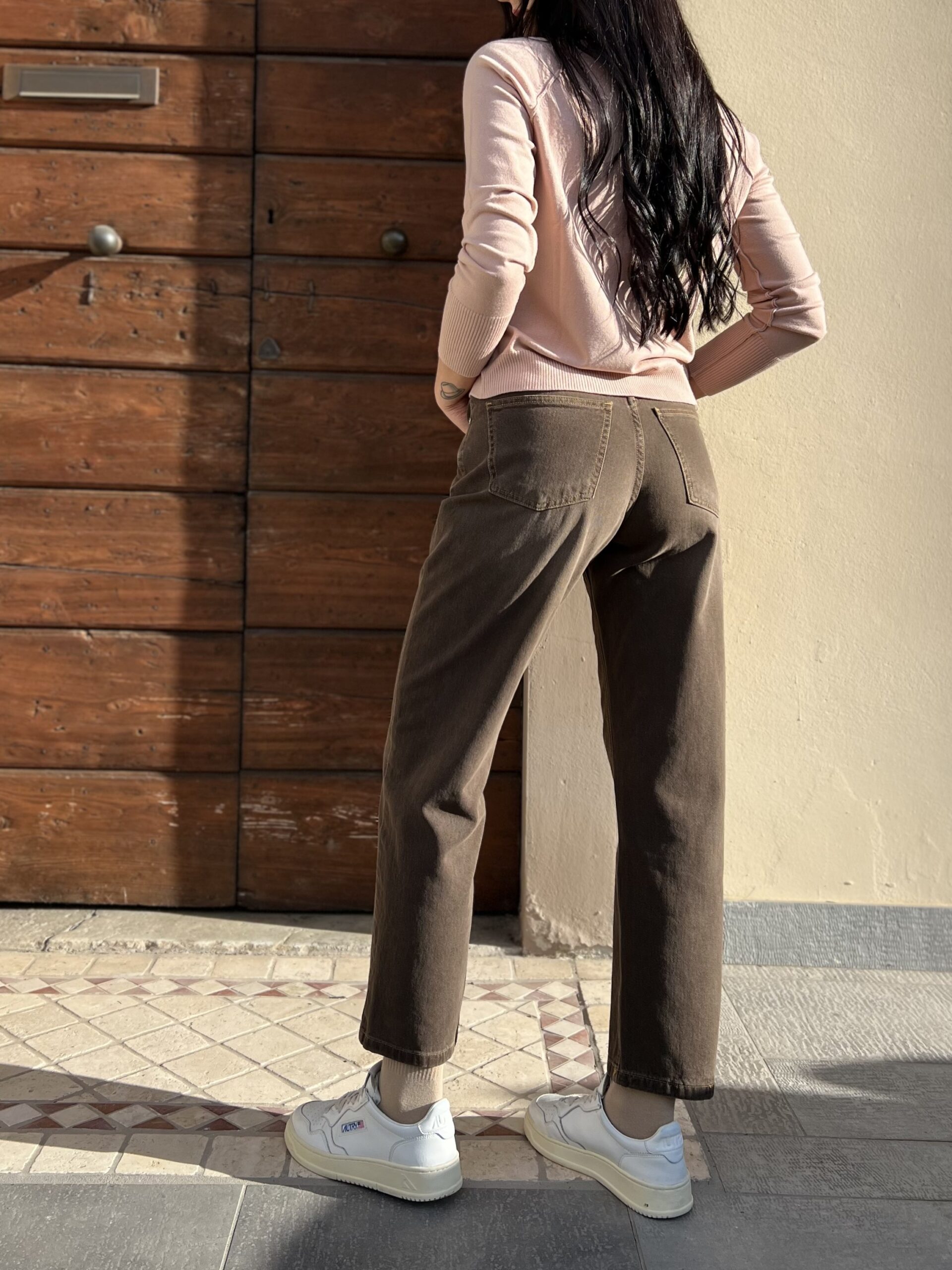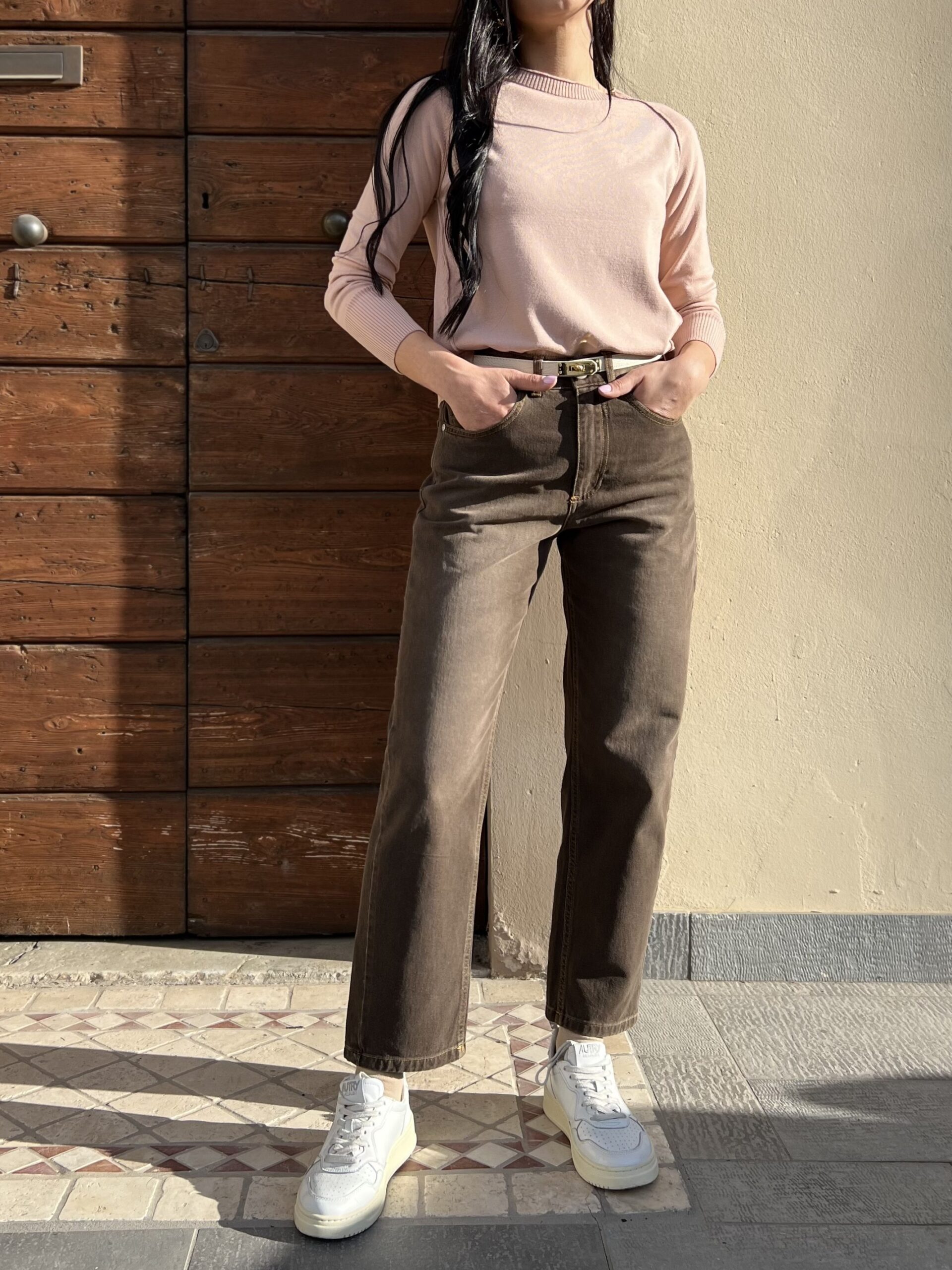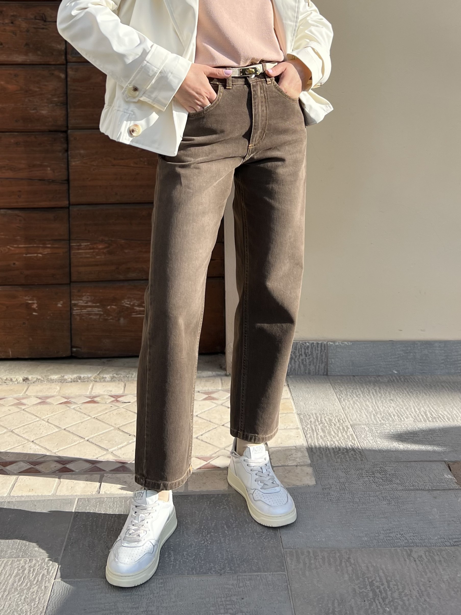 Denim dalla tela rigida leggermente sfumata. Modello straight dalla vestibilità regolare: XS per 38/40, S per 40/42 e M per 42/44. Composizione: 100% cotone.