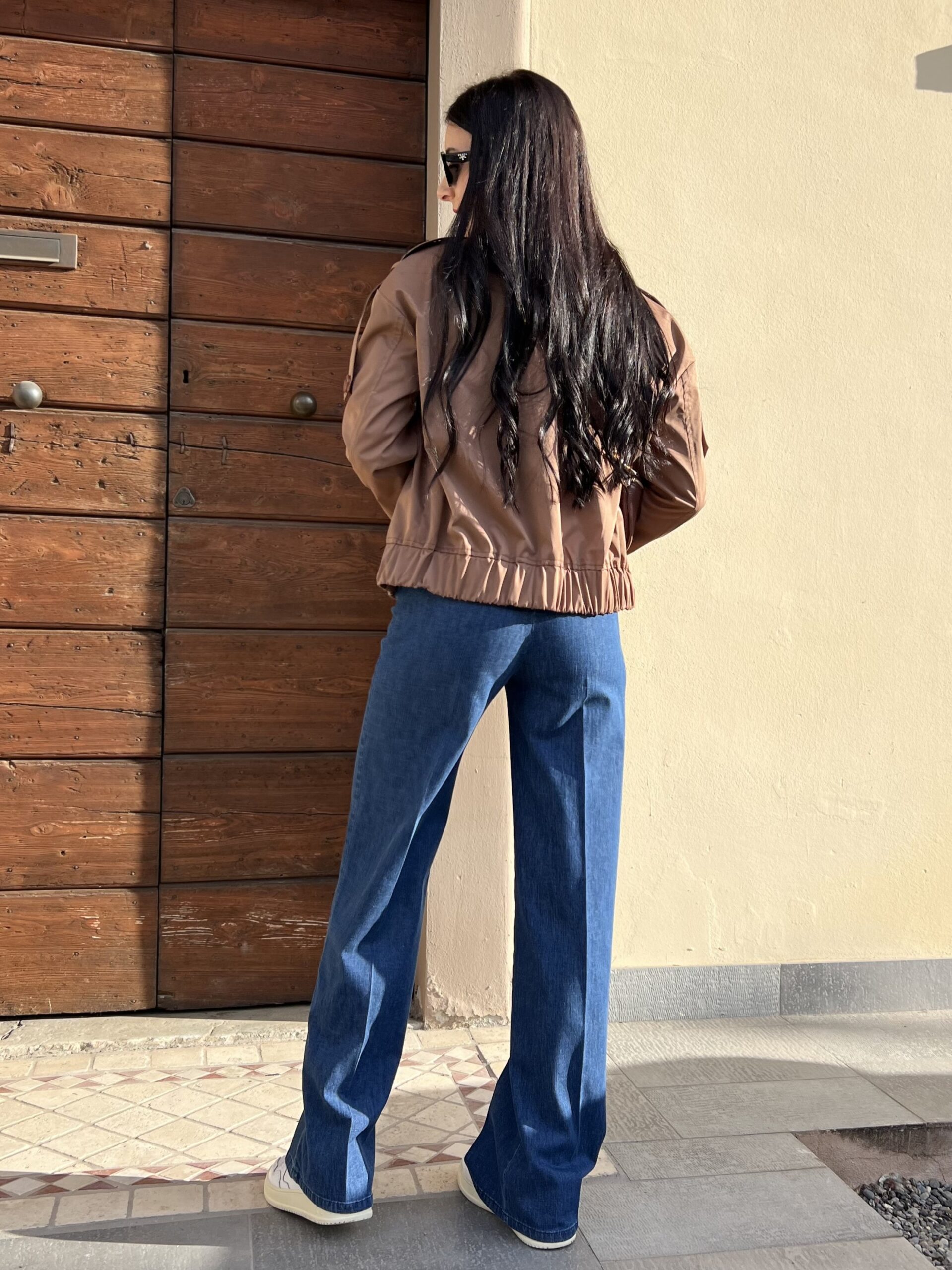 Denim dalla tela leggerissima e traspirante. Modello full lenght con elastico interno in vita, vestibilità regolare. Composizione: 80% cotone, 12% tencel, 5% eme e 3% elastan.