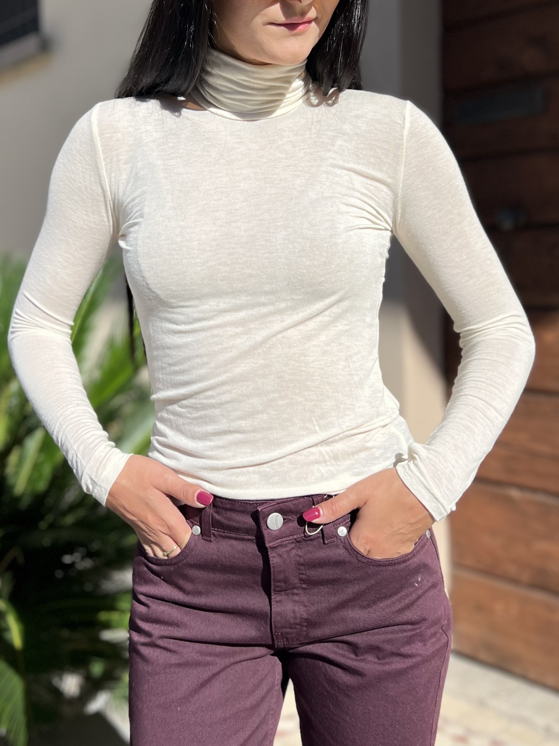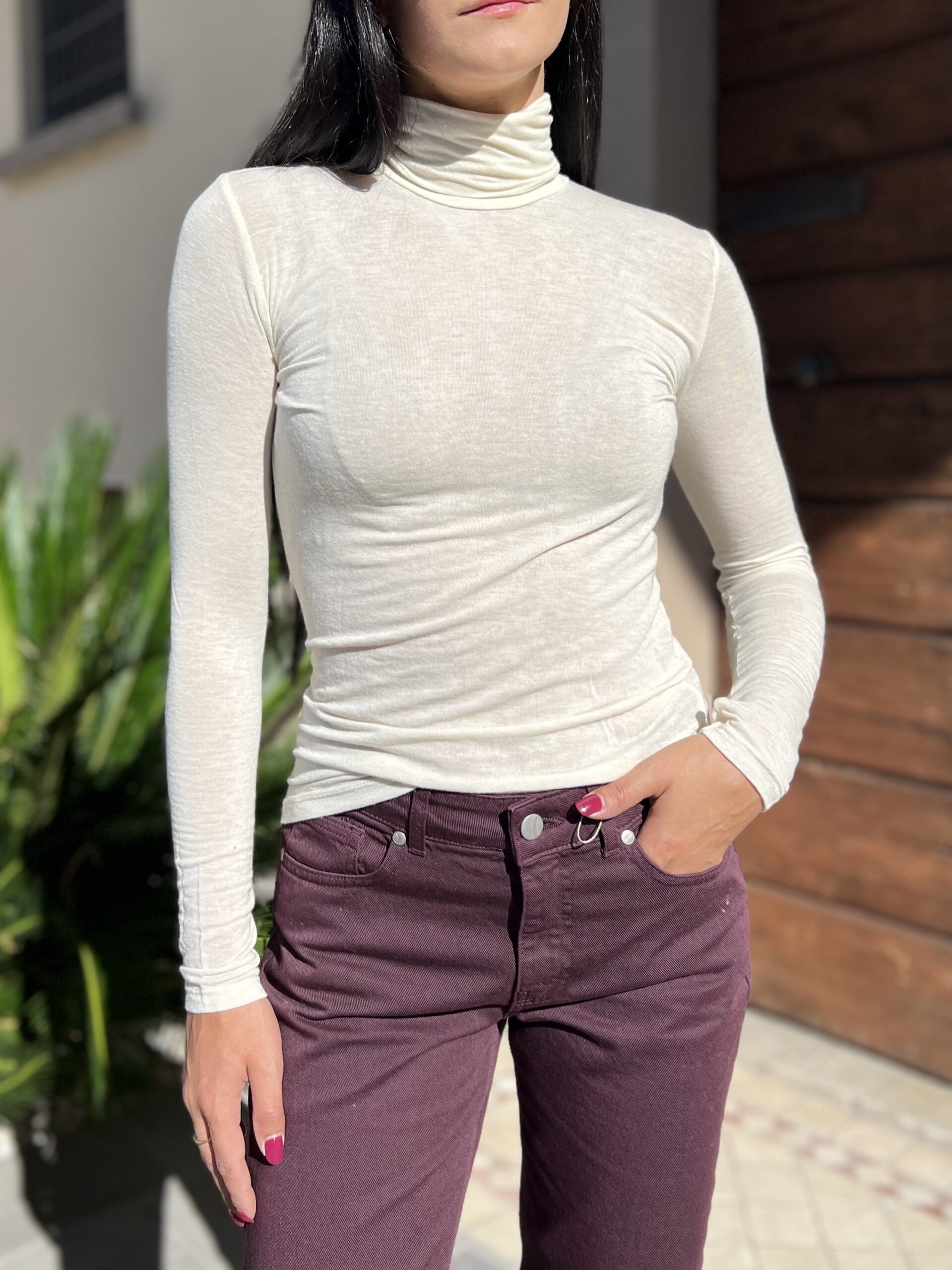 Dolcevita in misto cachemire (9%). Modello slim elasticizzato.
