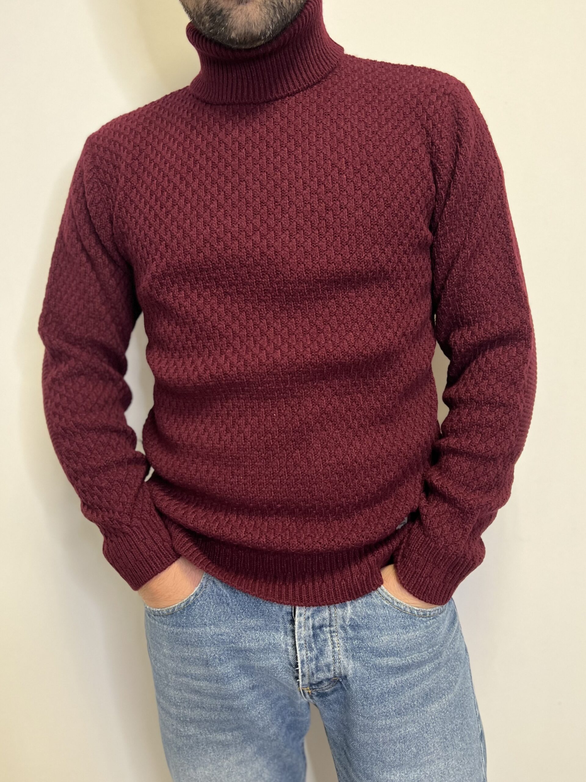 Dolcevita lavorazione punto riso, modello dalla vestibilità regolare.