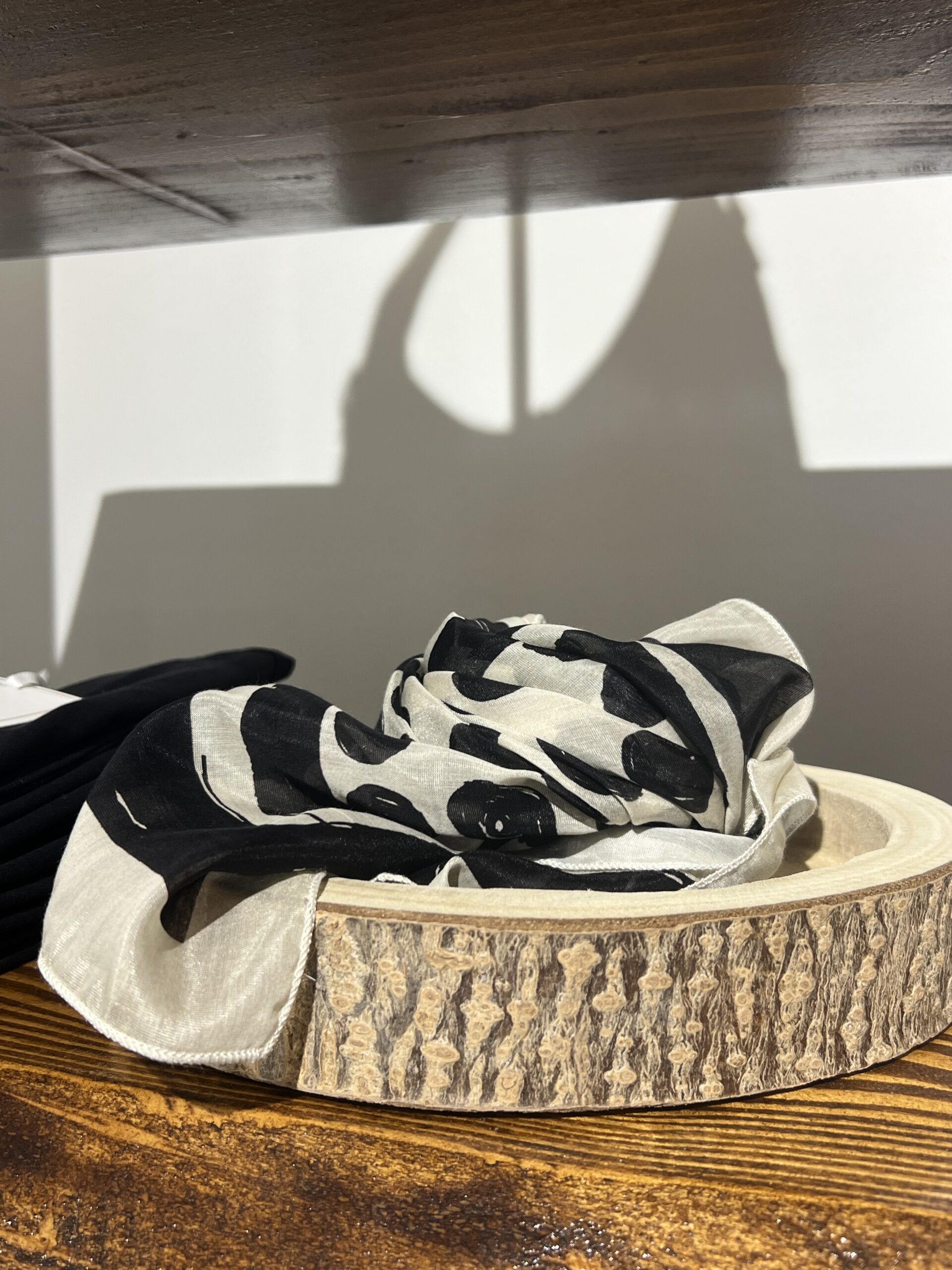 Foulard quadrato da 95 cm in fantasia. Composizione 75% cotone e 25% seta.