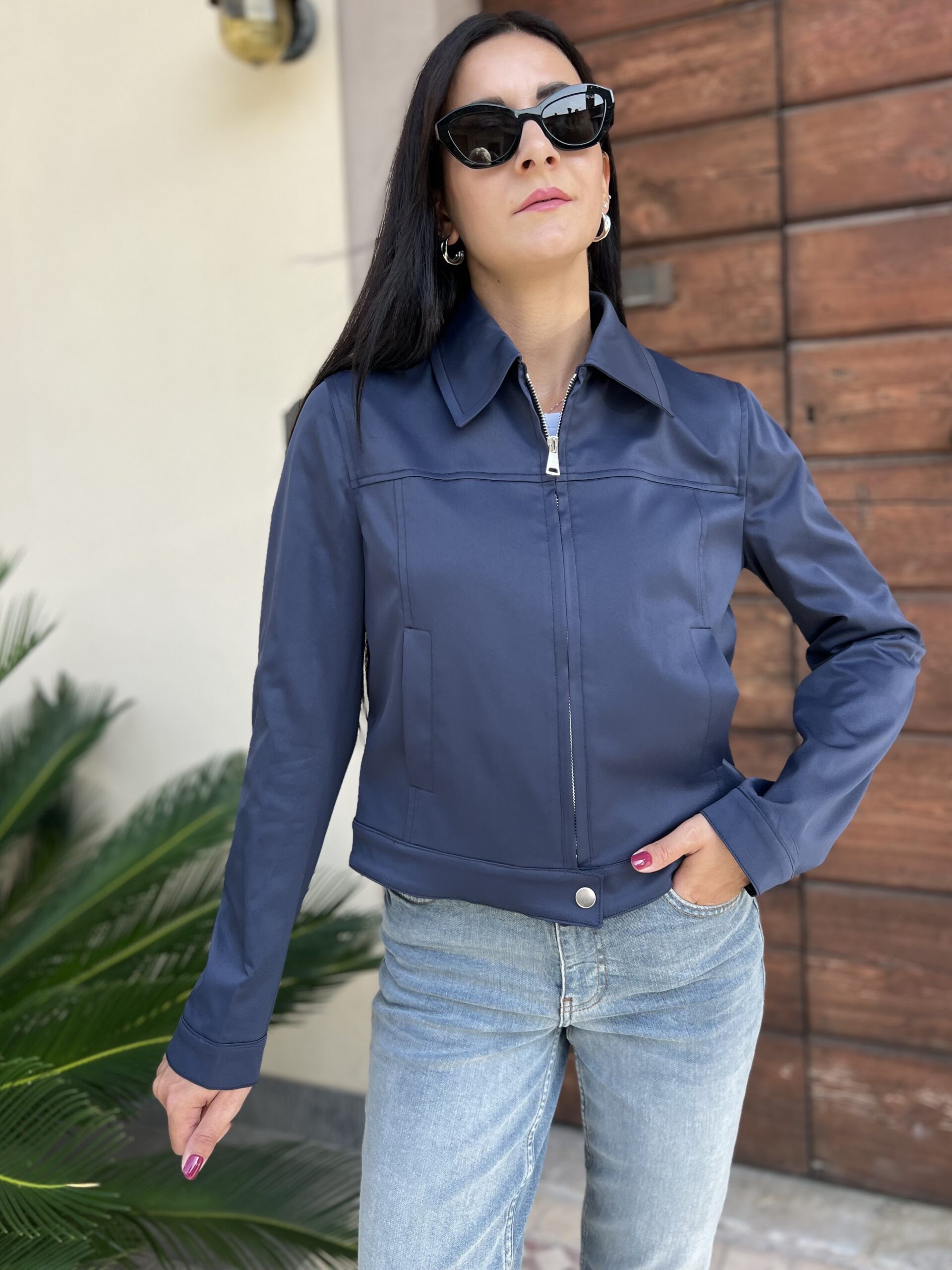 Giacca con zip e colletto, modello dal taglio slim e manica regolare. Tessuto anti-pioggia in poliestere. Taglia S per 38/40 e M per 42 e L per 44.