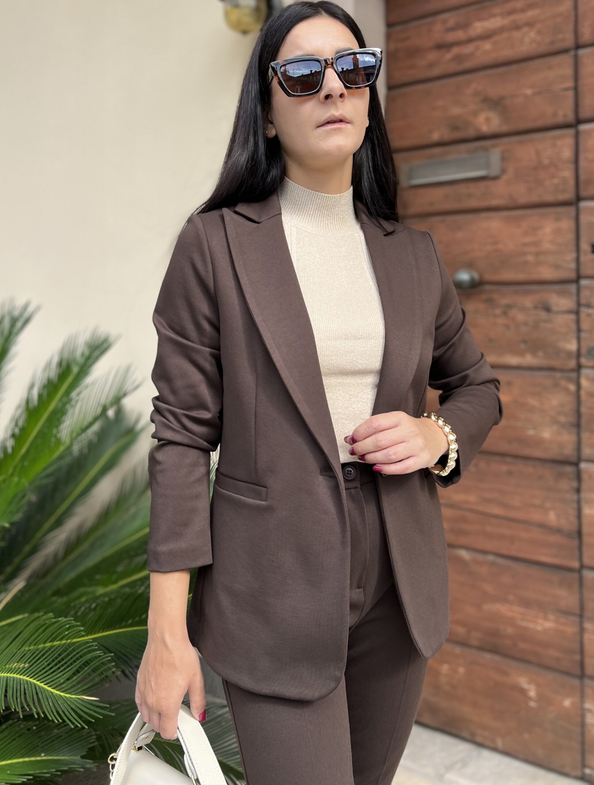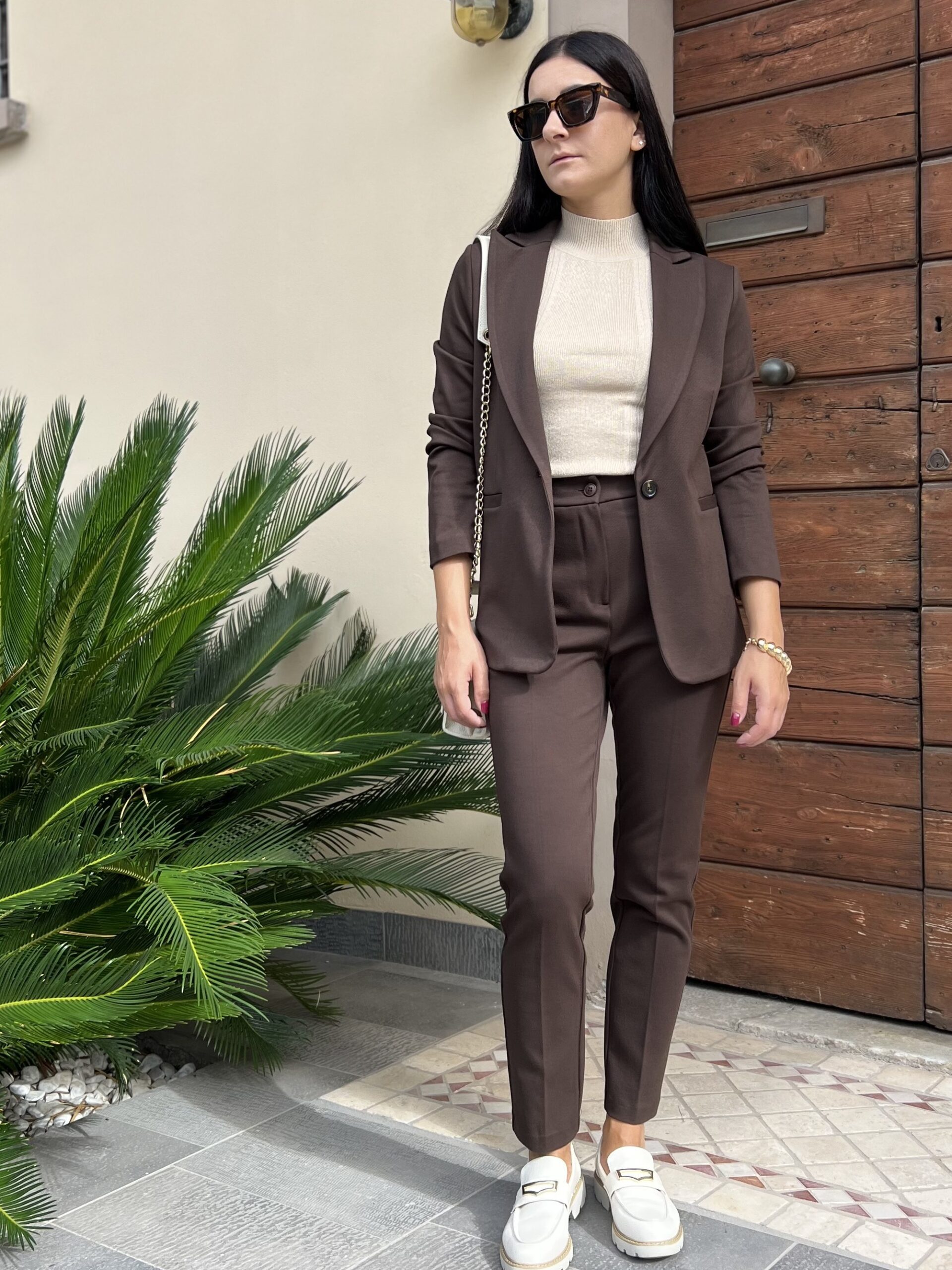 Giacca in punto Milano, modello classico monopetto sfiancato, comoda ed elasticizzata. Taglia S per 40/42 e M per 44/46.