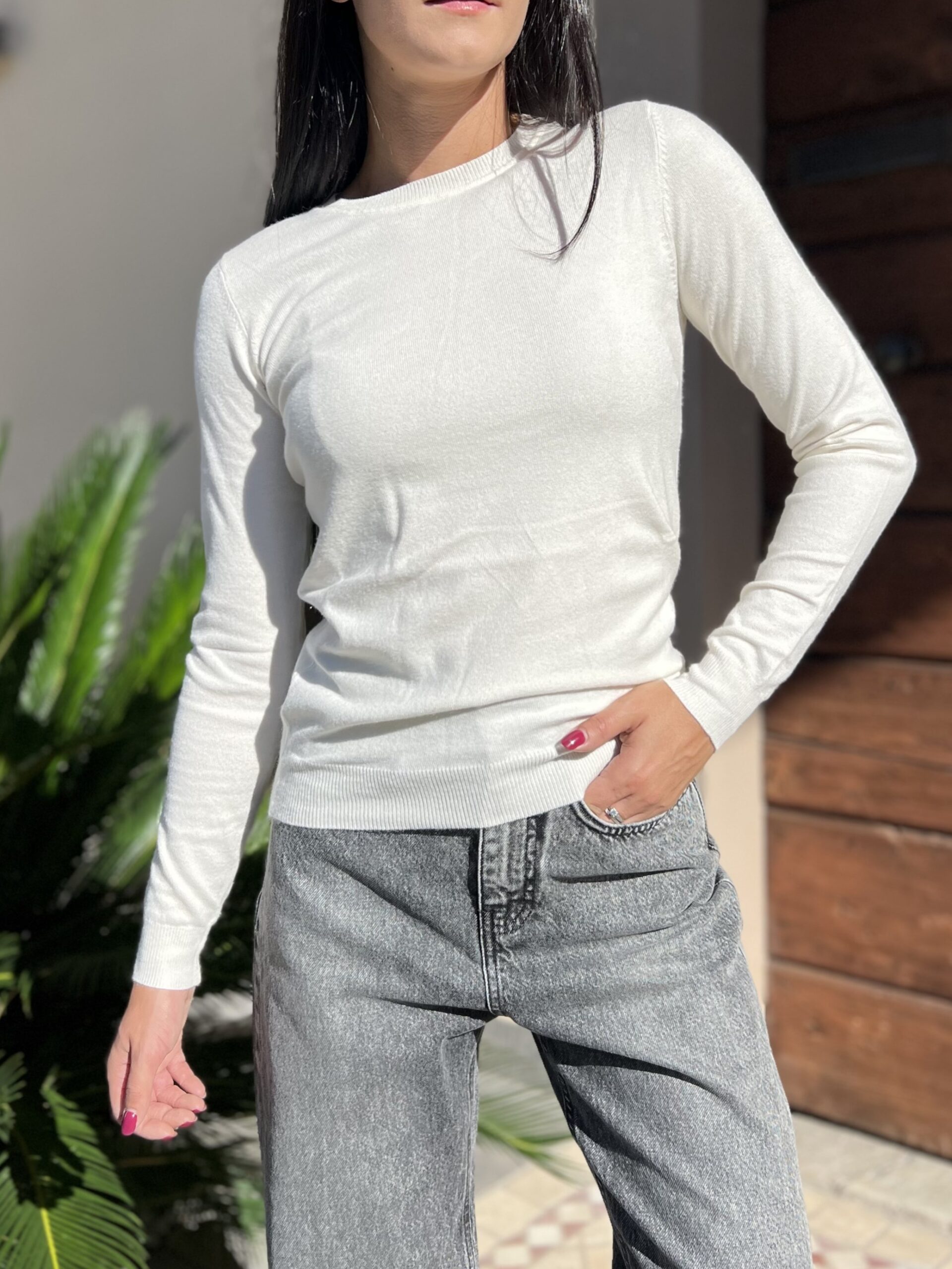 Maglioncino girocollo basico in viscosa, modello regolare dalla vestibilità slim.
