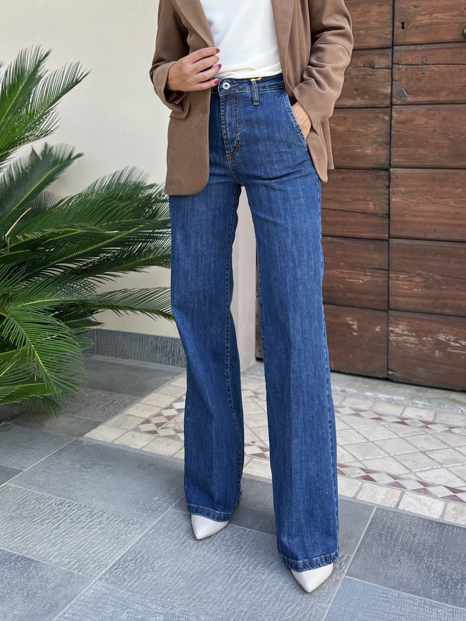 Denim dalla tela comoda ed elasticizzata. Modello full-lenght con tasca alla francese e patta sul retro. Taglia Xs per 38, S per 40, M per 42, L per 44 e Xl per 46.