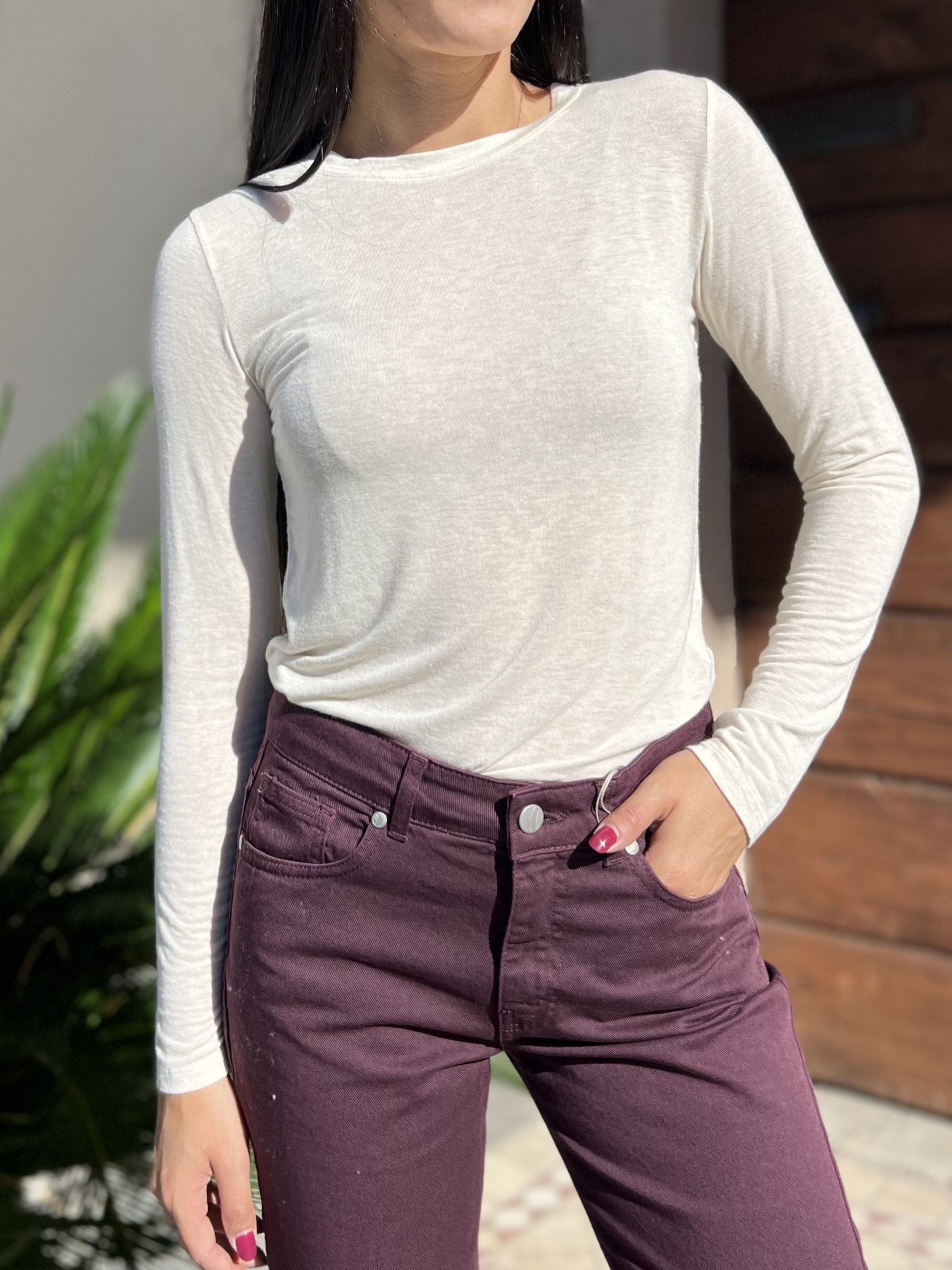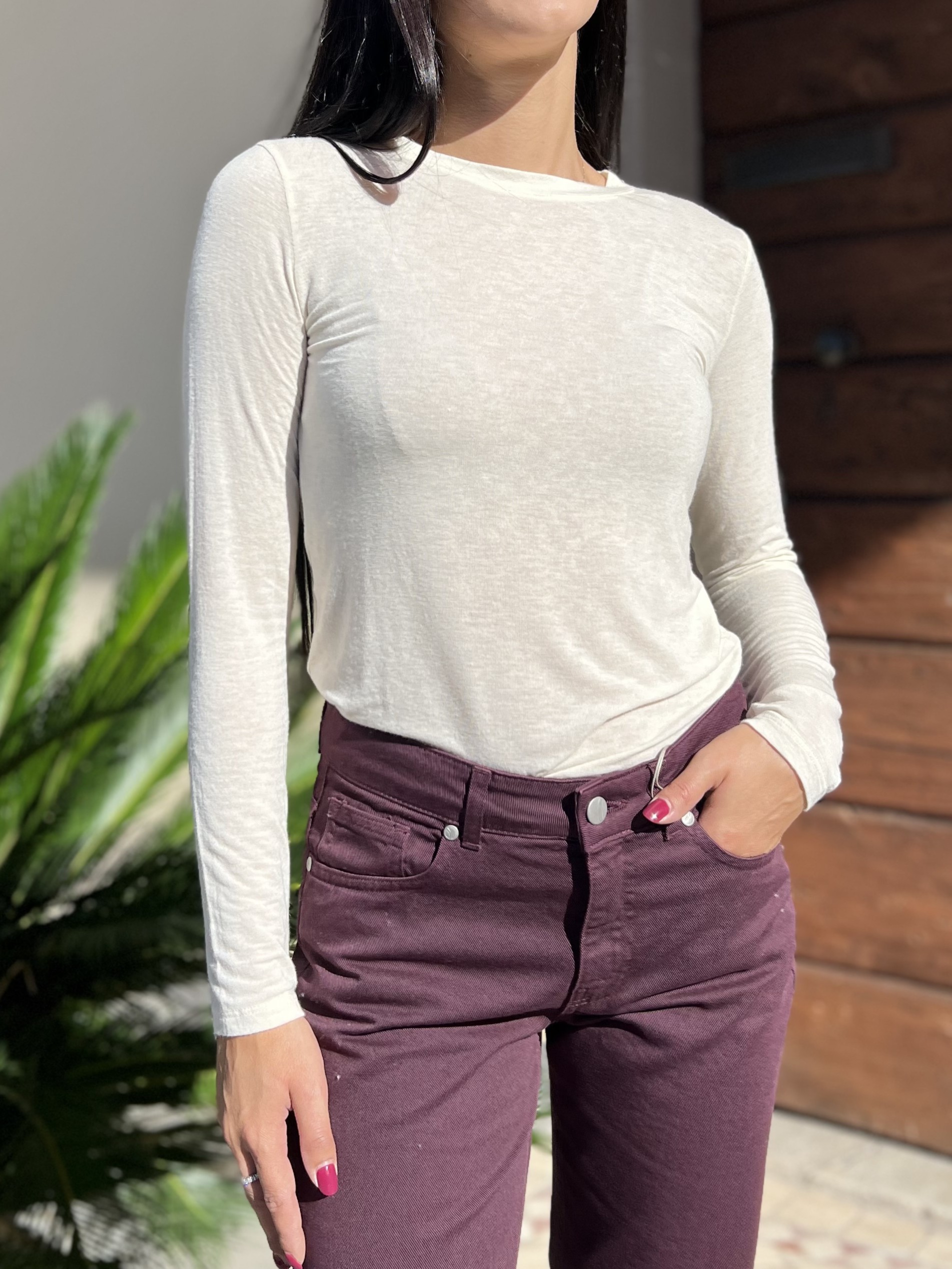 Maglia calda e morbida girocollo in misto cachemire (9%). Modello slim elasticizzato.