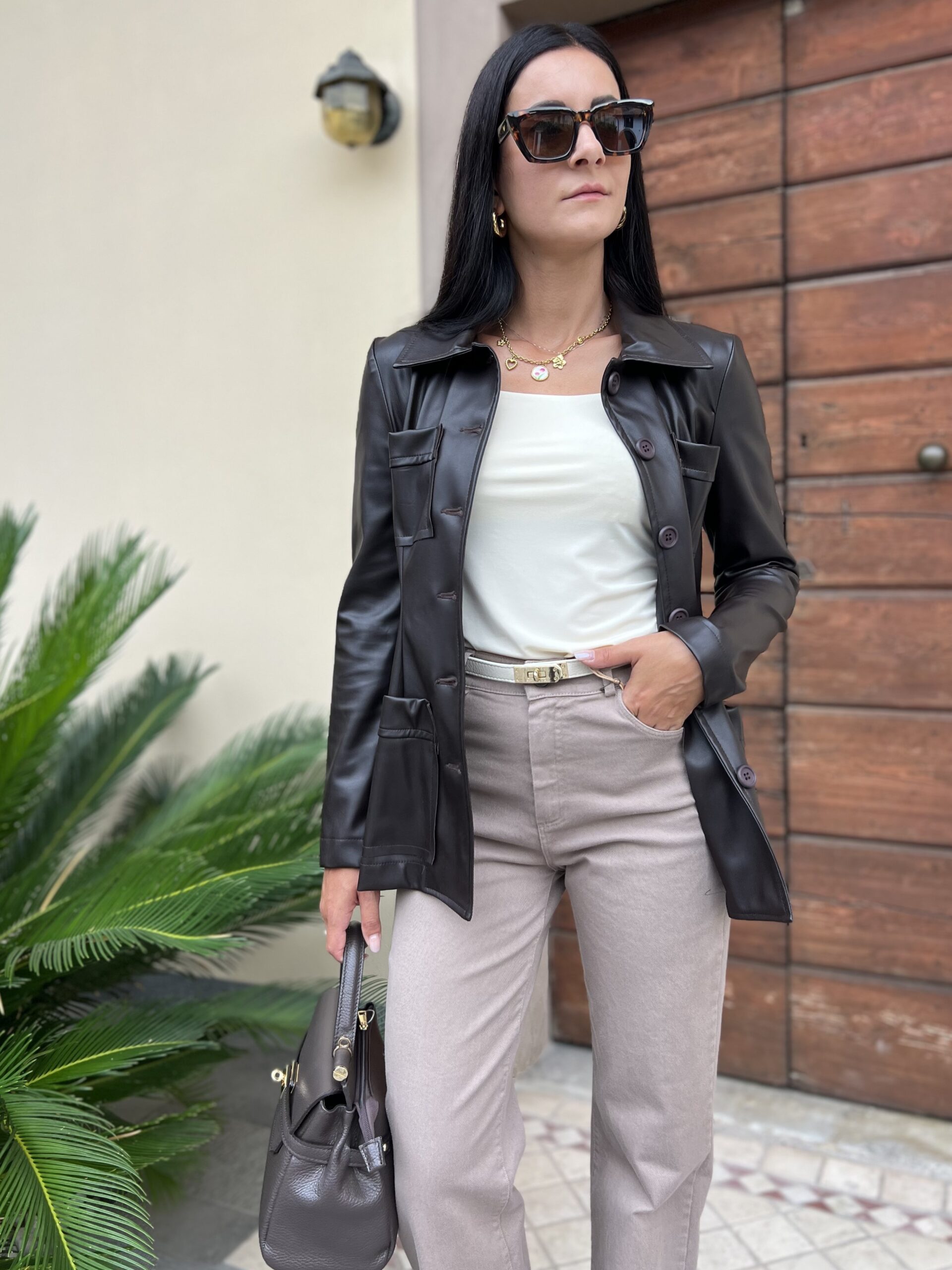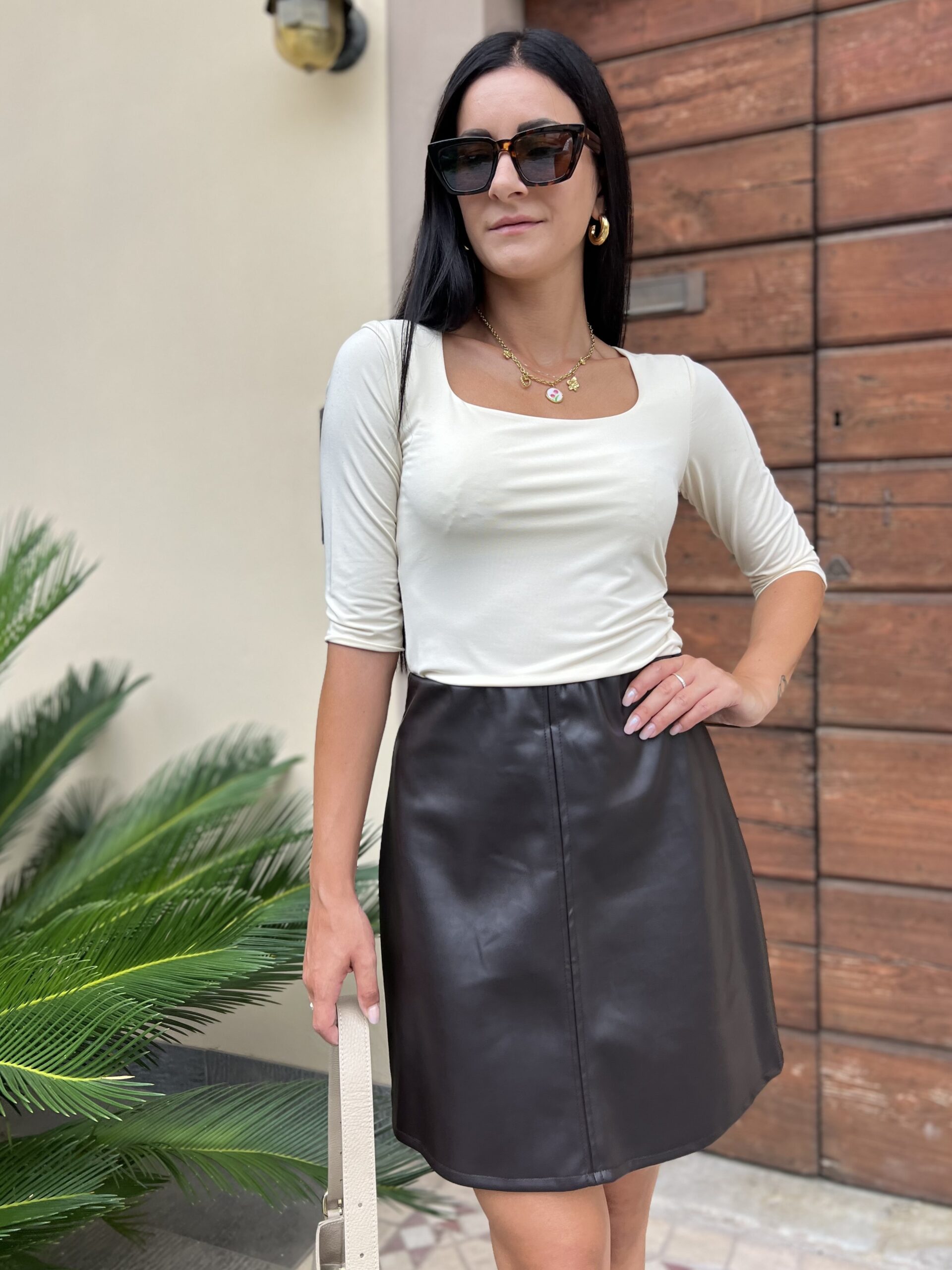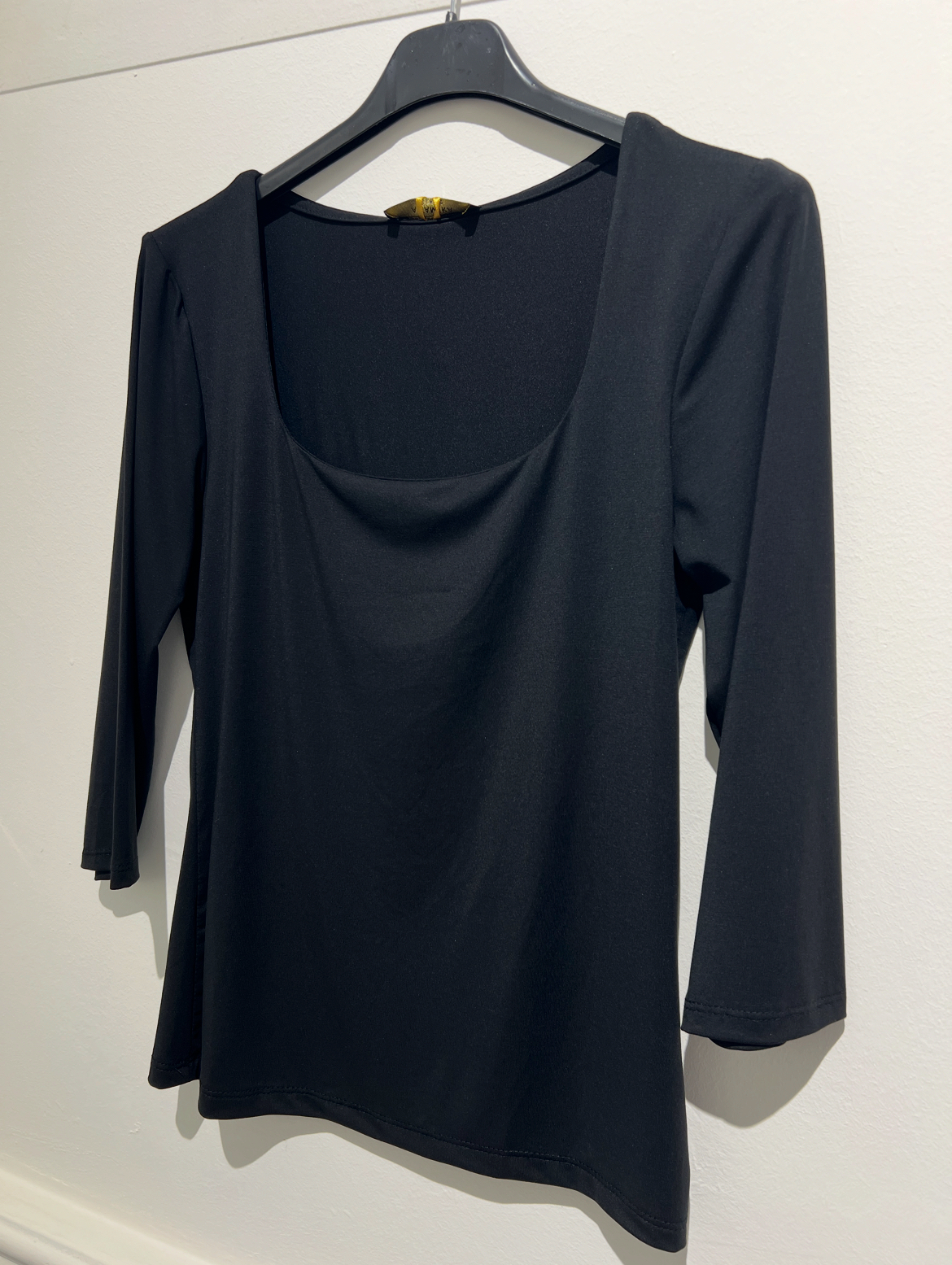 Maglia aderente in modal, modello con scollo quadrato e manica 3/4. Perfetto sotto-giacca, lunghezza al fianco.