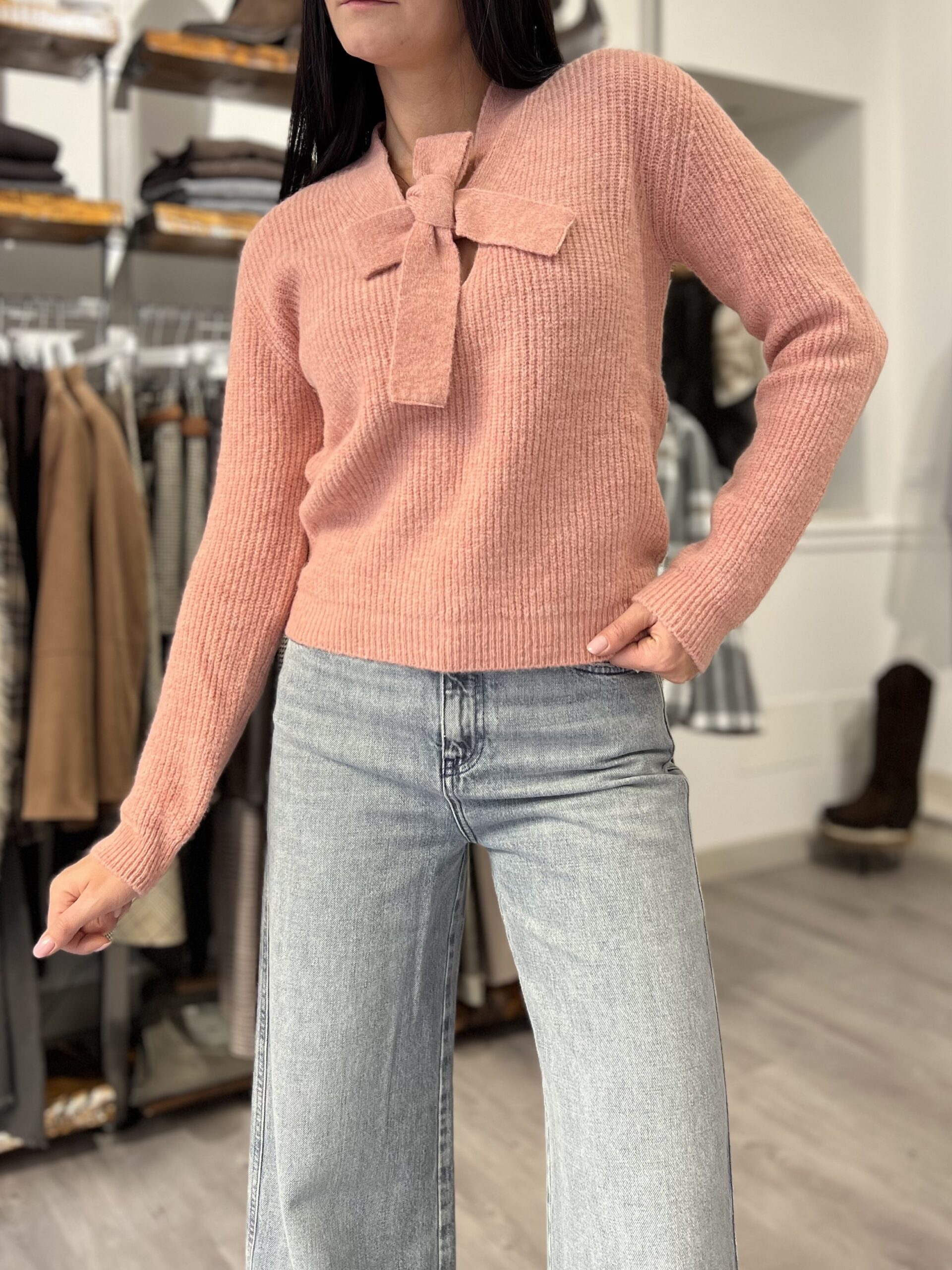 Maglione dalla vestibilità slim, modello con manica regolare e dettaglio fiocco. 13% di lana all’interno della composizione.
