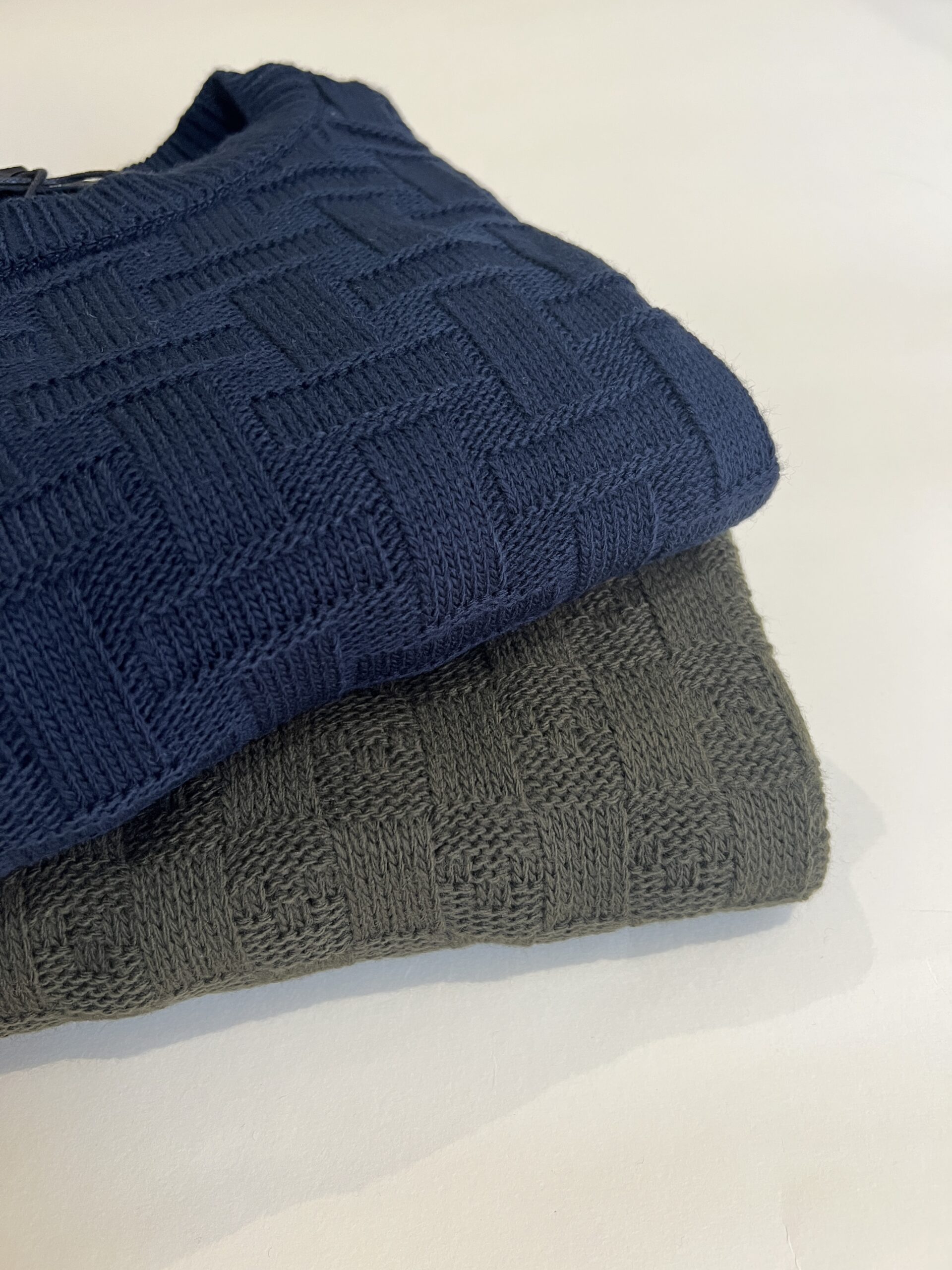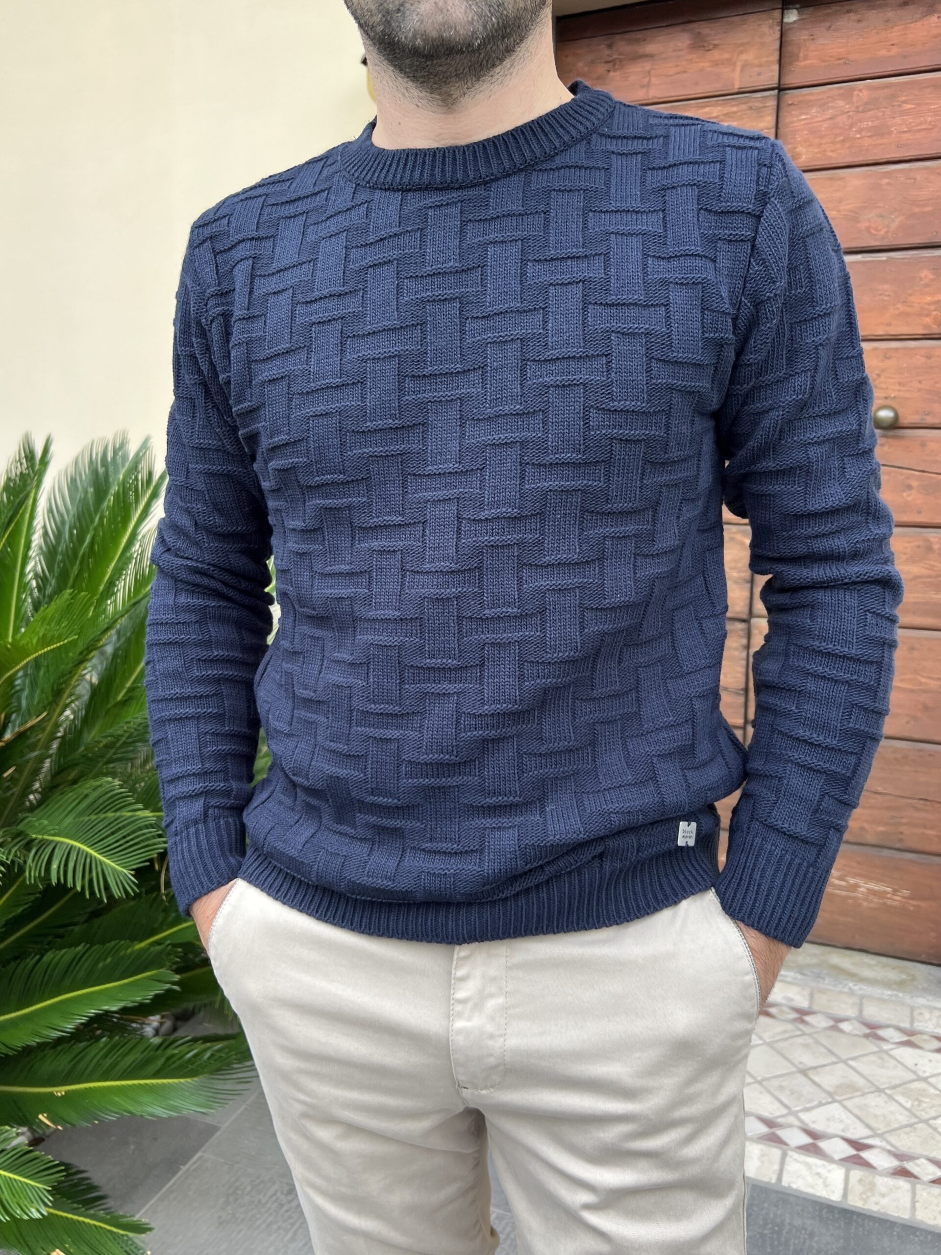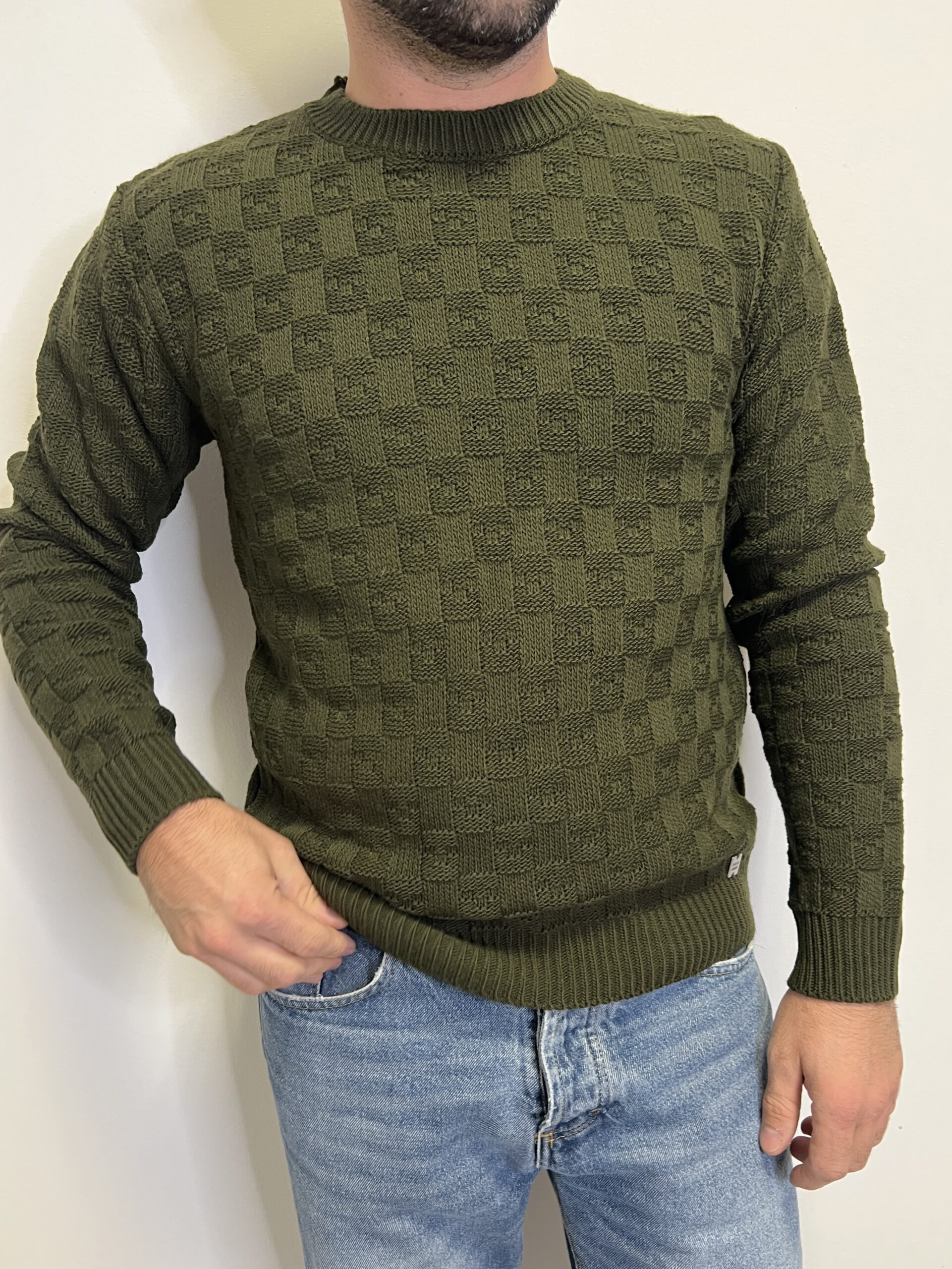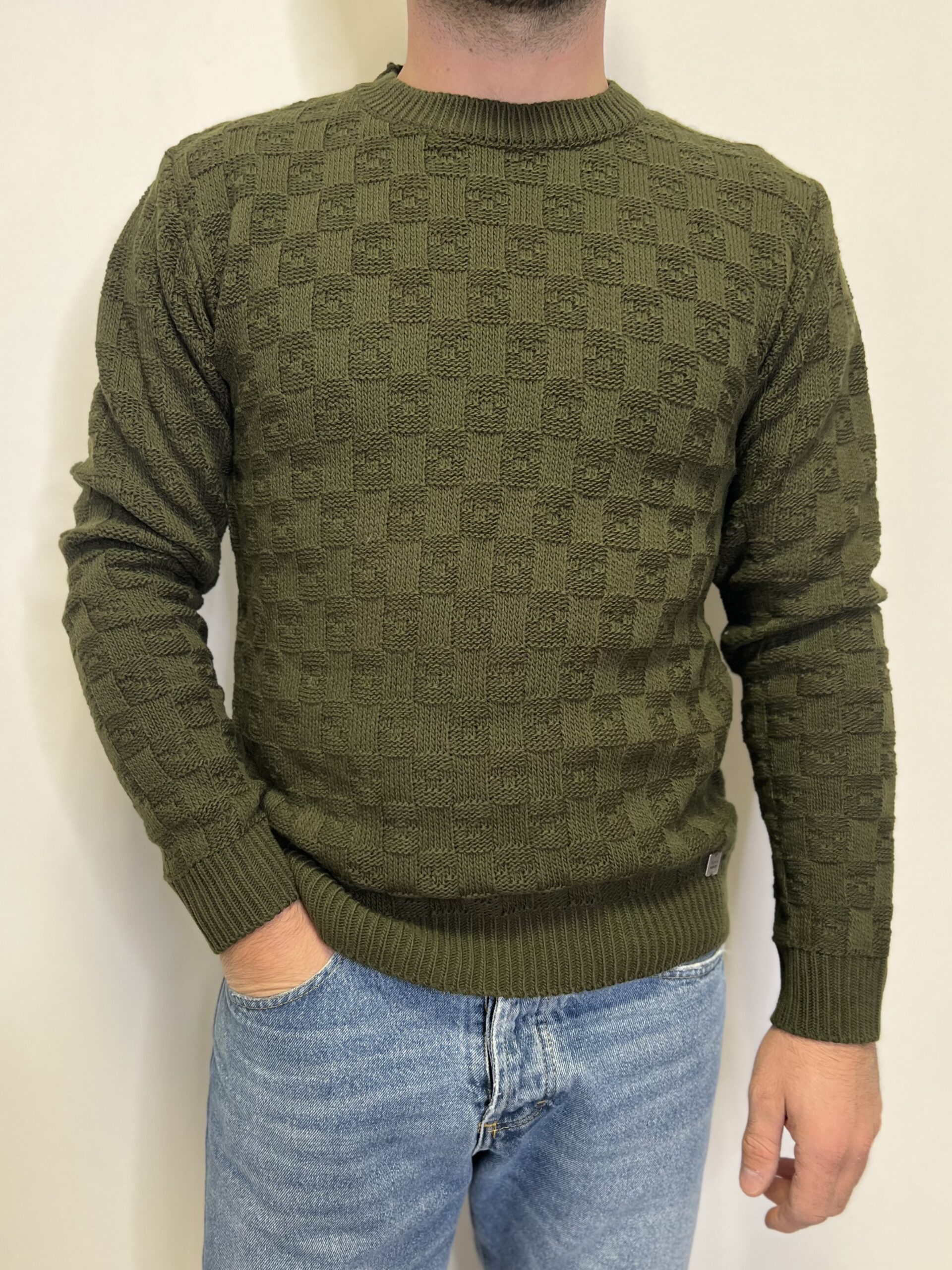 Maglione girocollo lavorato dalla modellatura classica. 30% di lana all’interno della composizione.