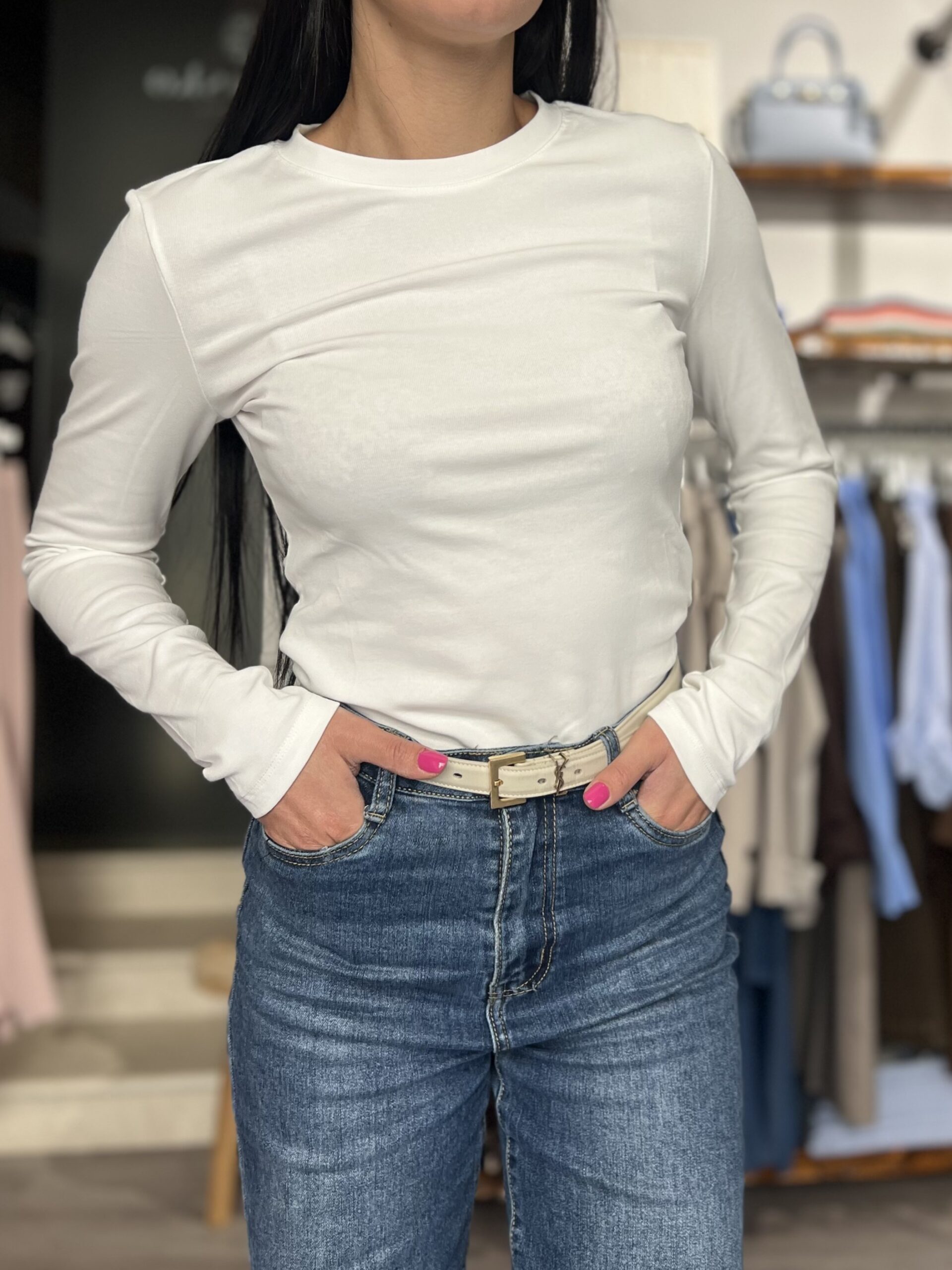T-shirt in cotone elasticizzati a manica lunga, modello girocollo basico slim lungo fino al fianco.