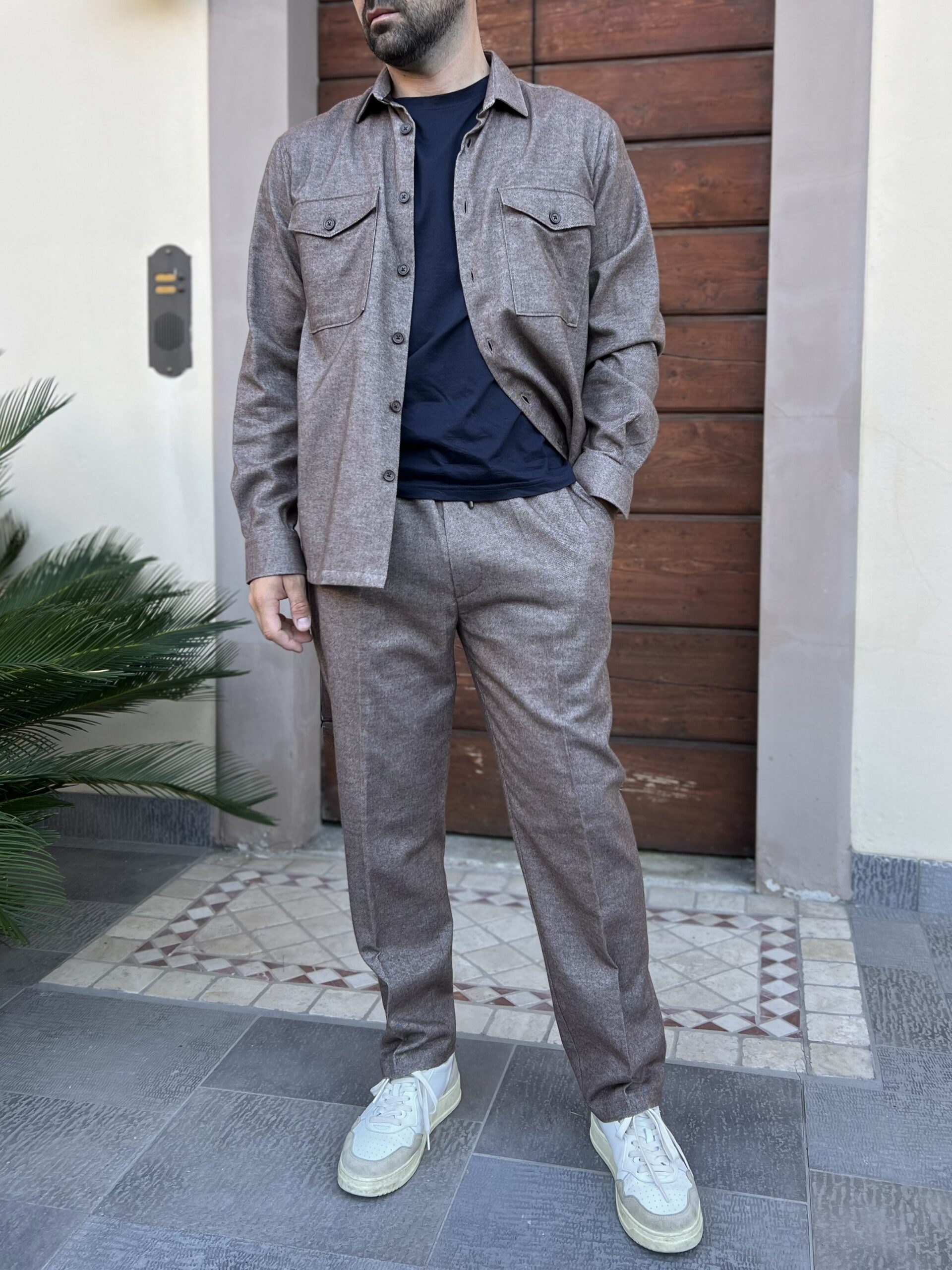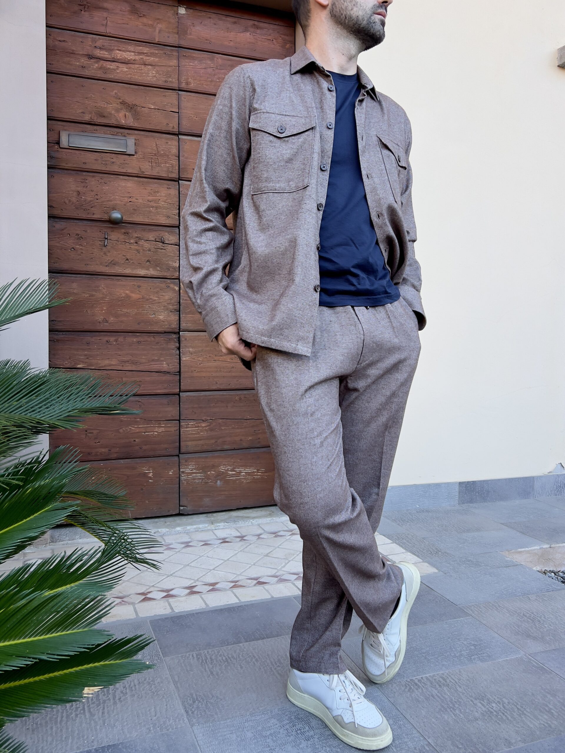 Pantalone con elastico e coulisse, modello dal taglio dritto e morbido. Caldo cotone, morbido al tatto, con tasca laterale. Vestibilità ampia.