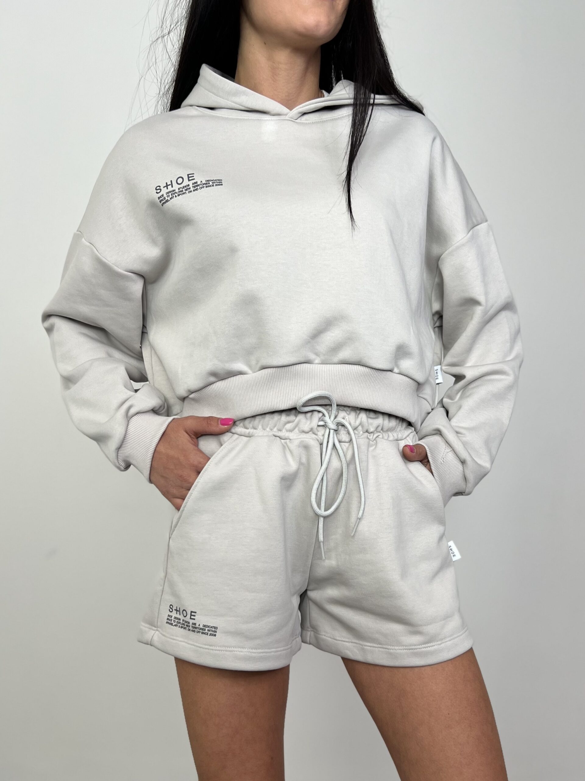 Pantaloncino in cotone garzato, modello a vita alta con elastico, coulisse e tasca laterale.