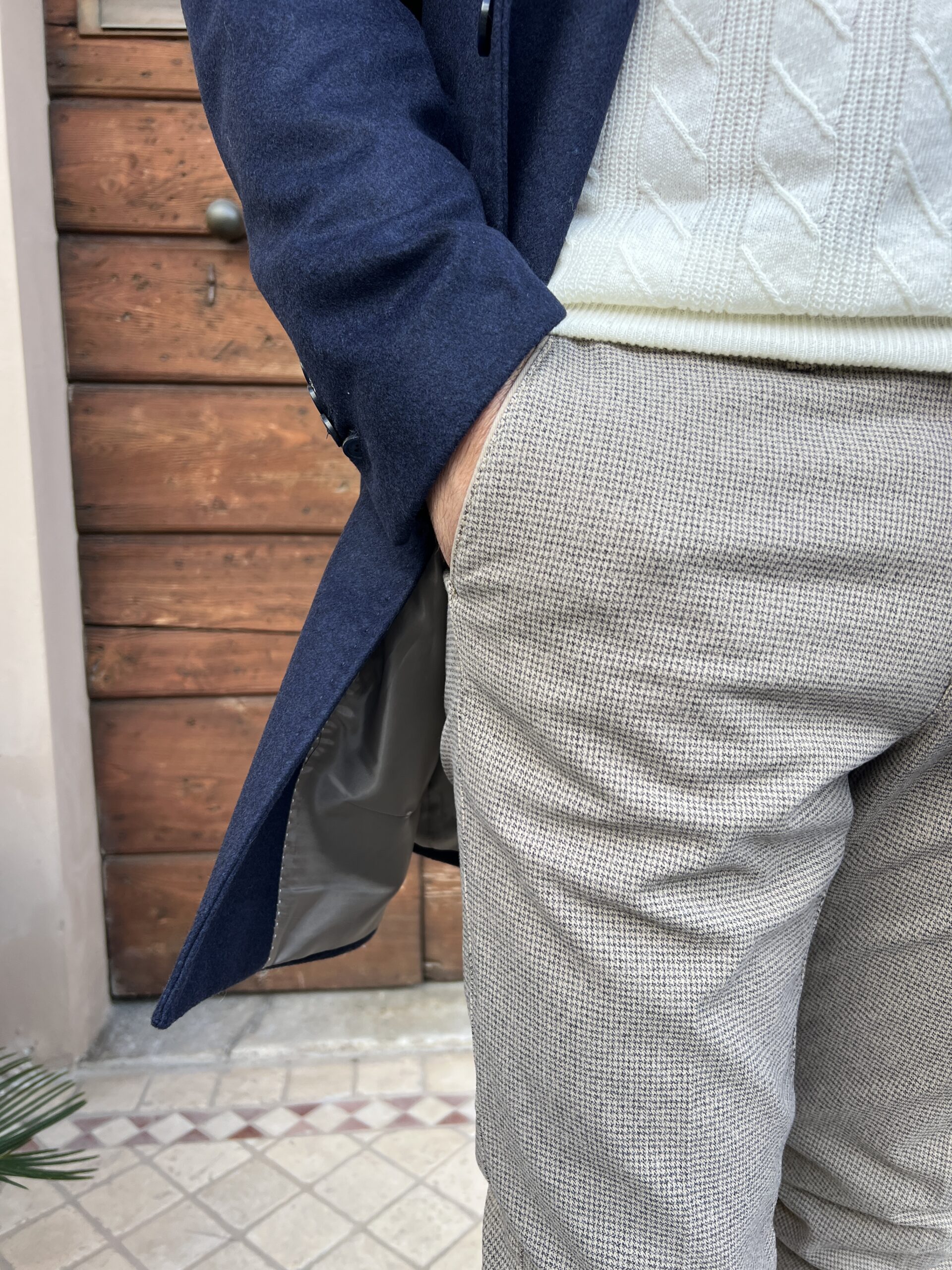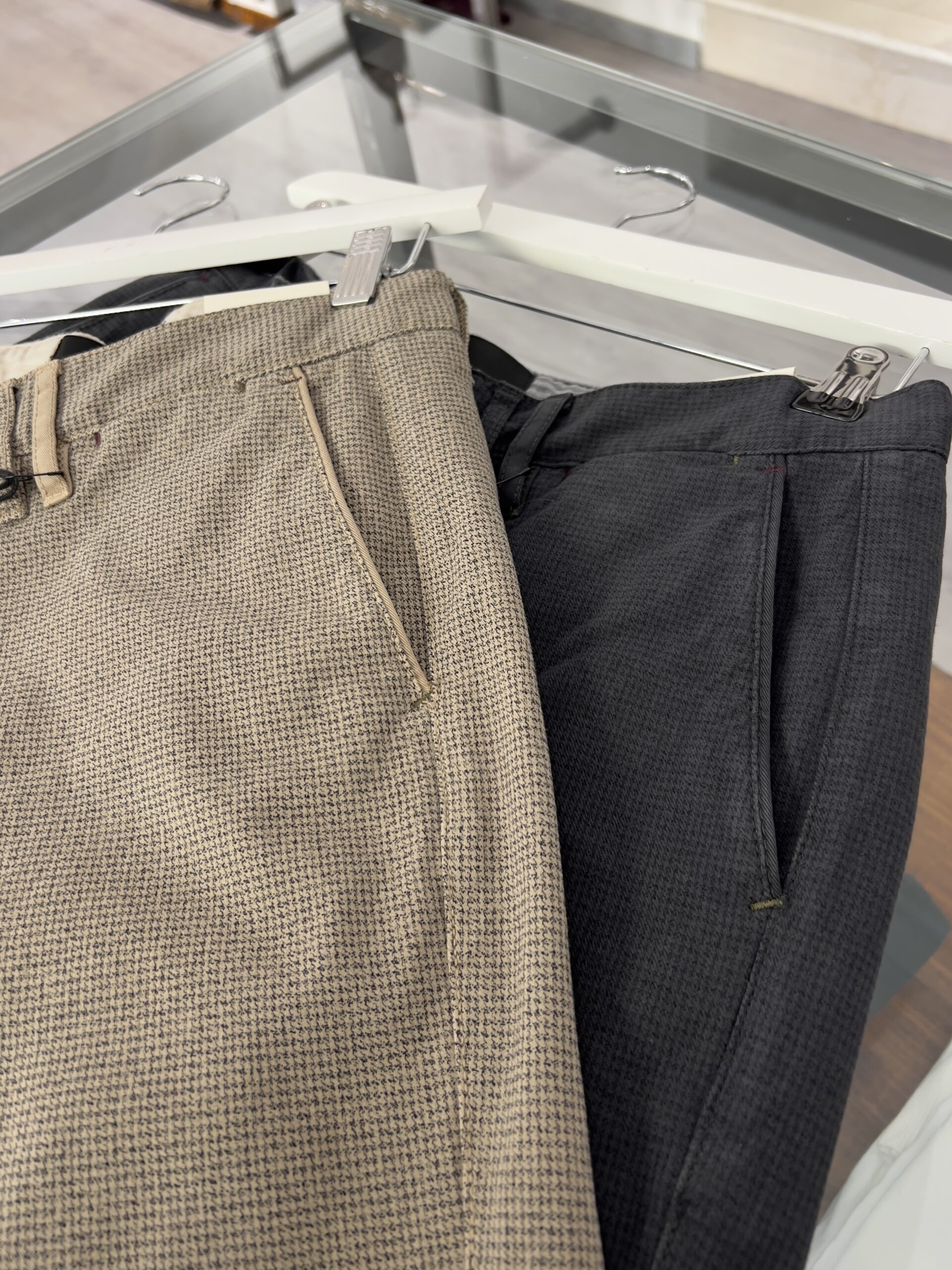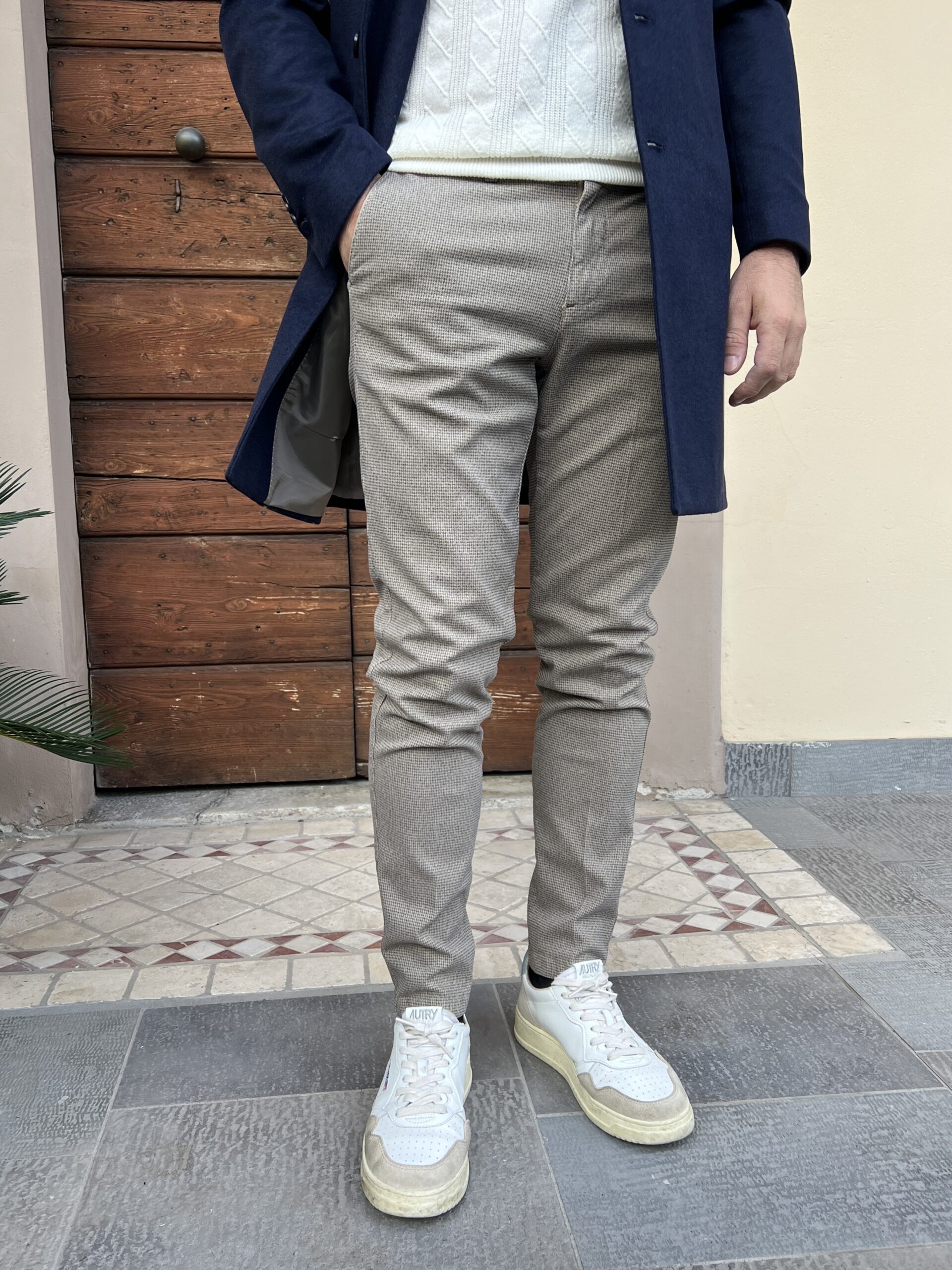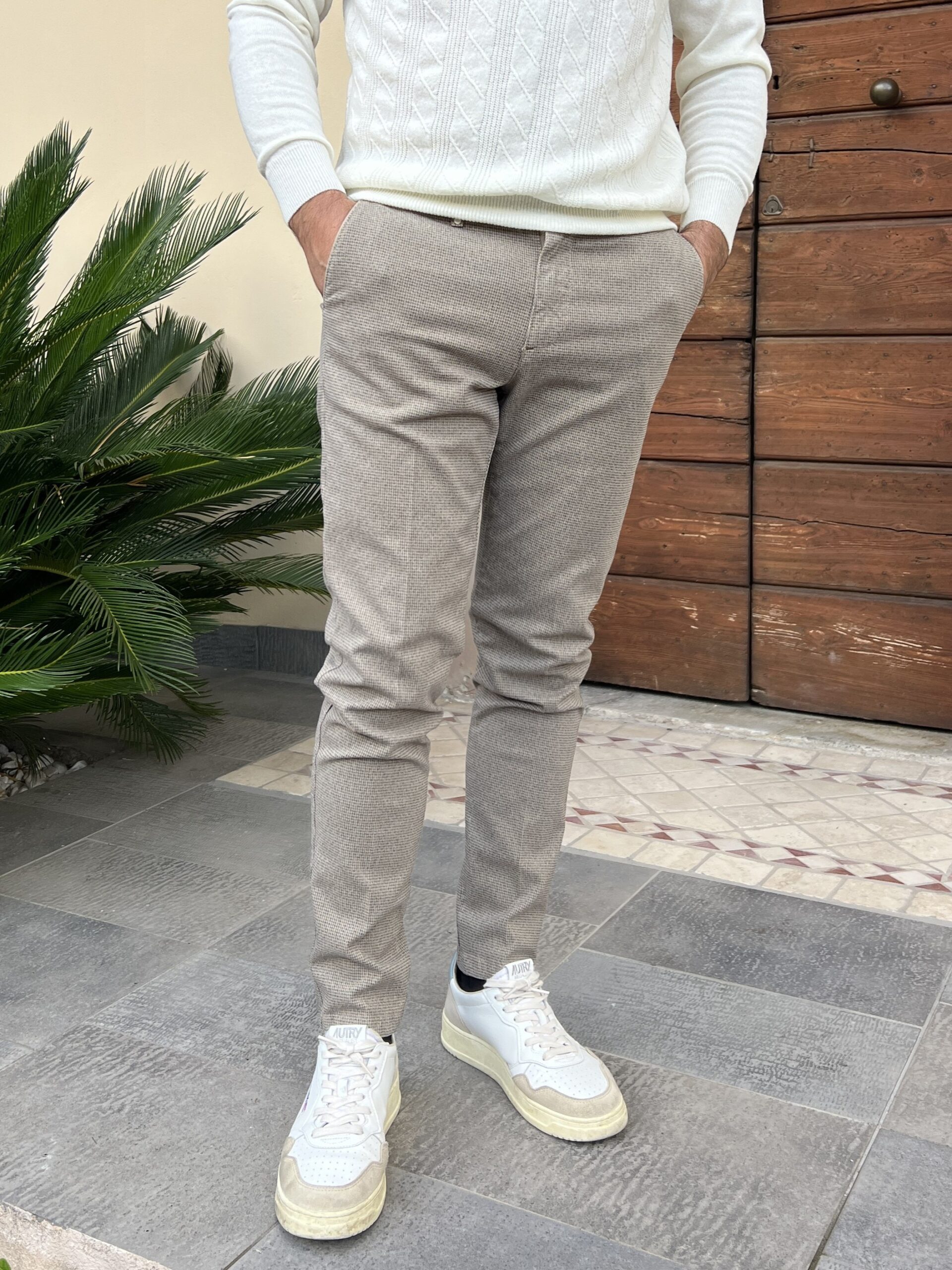 Pantalone in caldo cotone, modello chino classico in micro-fantasia.