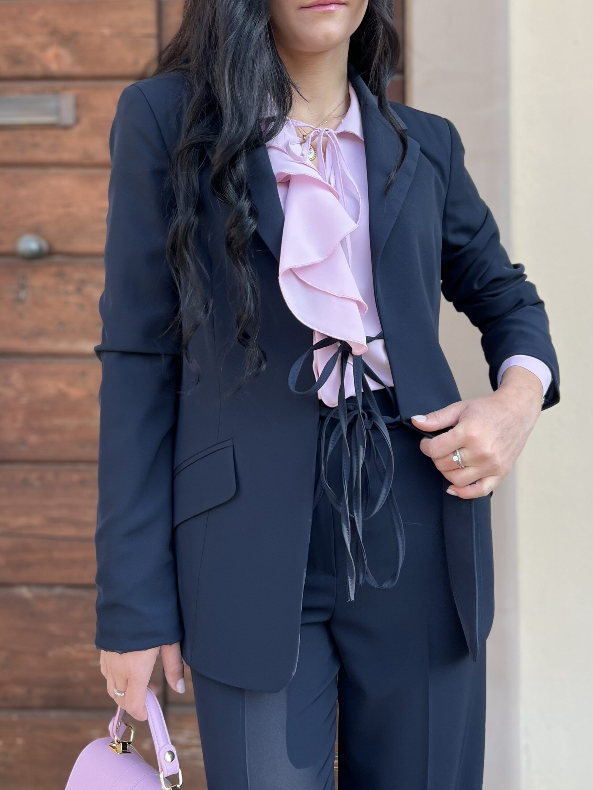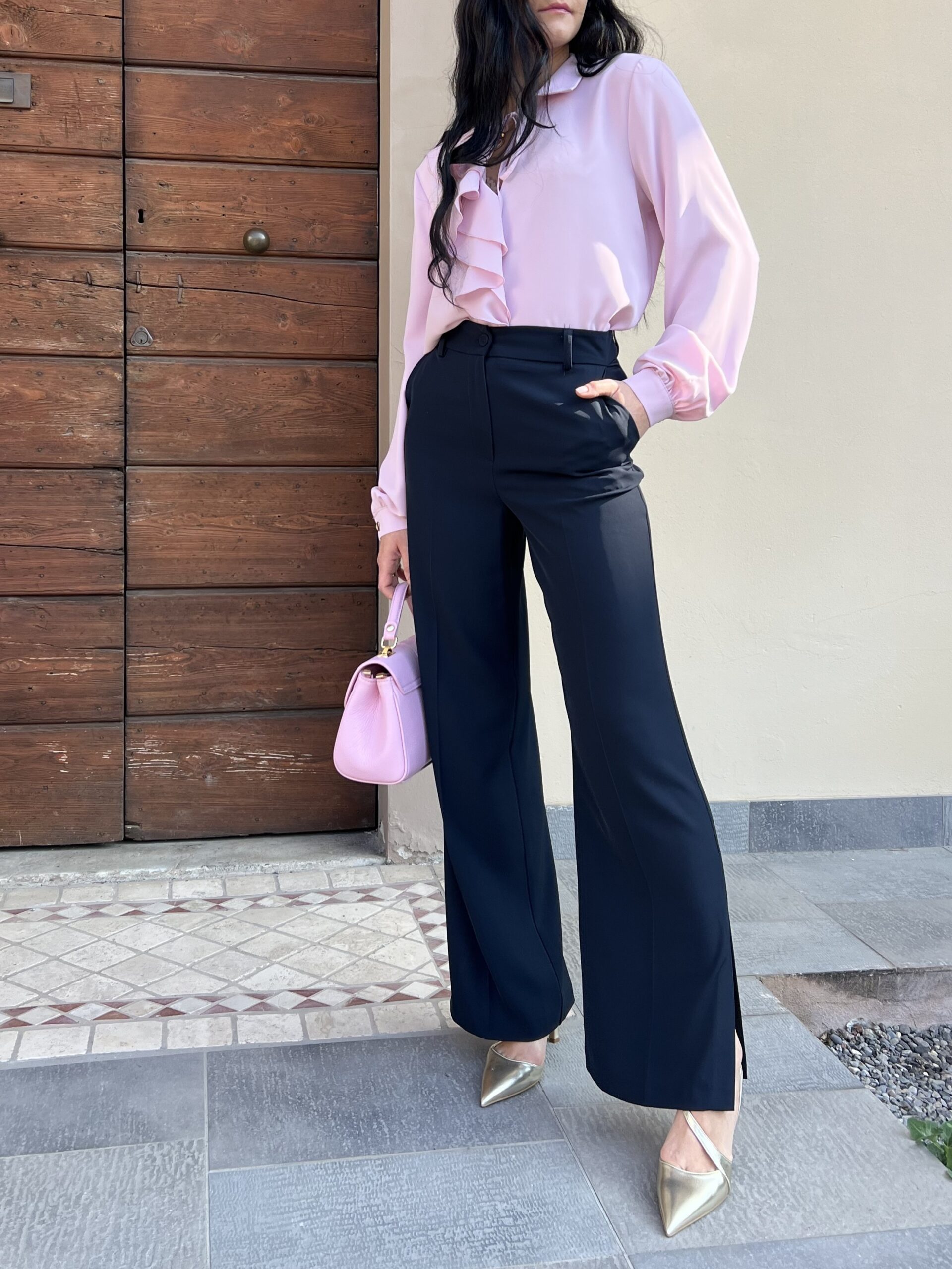 Pantalone in tessuto tecnico, leggero e fluido. Modello dal taglio dritto con tasca laterale e spacco sul fondo. La taglia xs veste 40, s 42 e m fino alla 44. Da abbinare volendo alla sua giacca.