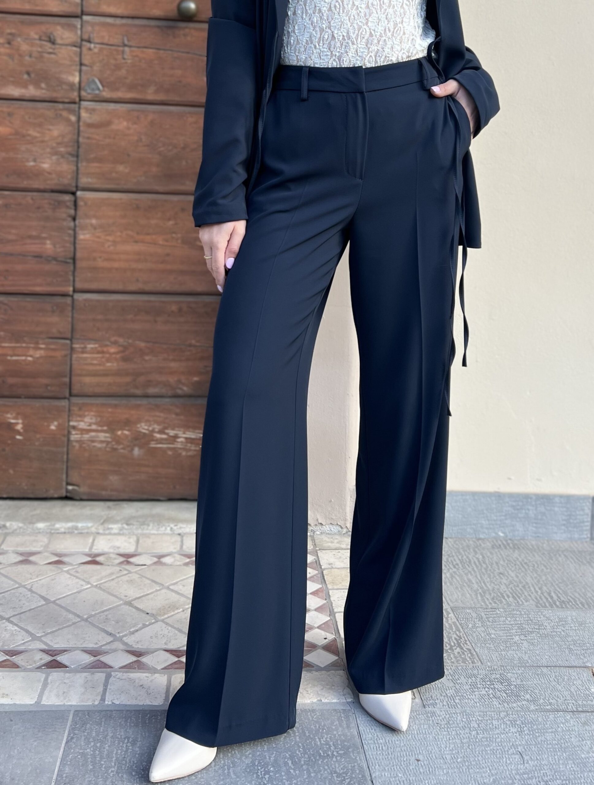 Pantalone in tessuto tecnico, leggero e fluido. Modello dal taglio dritto con tasca laterale. La taglia xs veste 40, s 42 e m fino alla 44. Da abbinare volendo alla sua giacca.