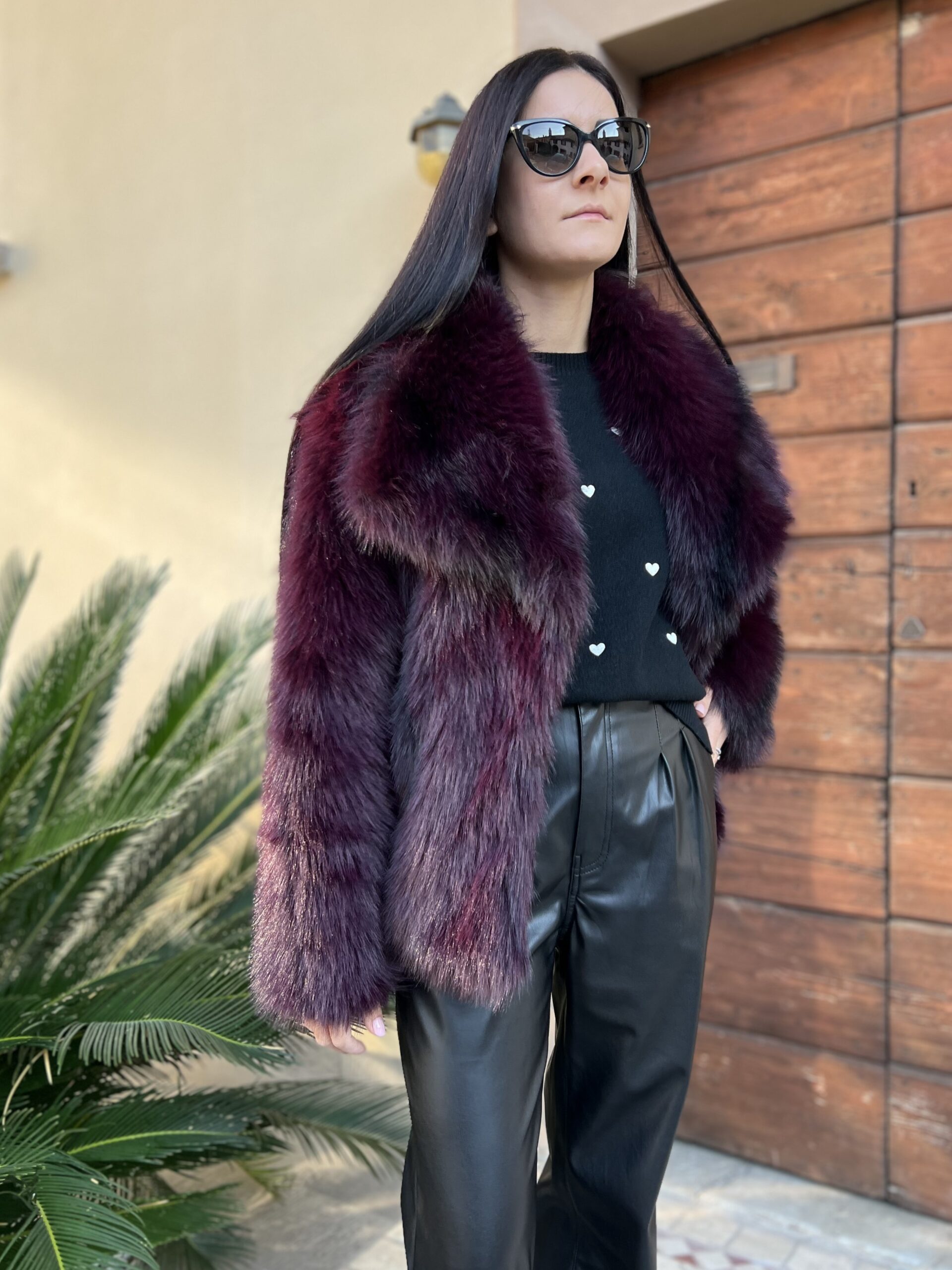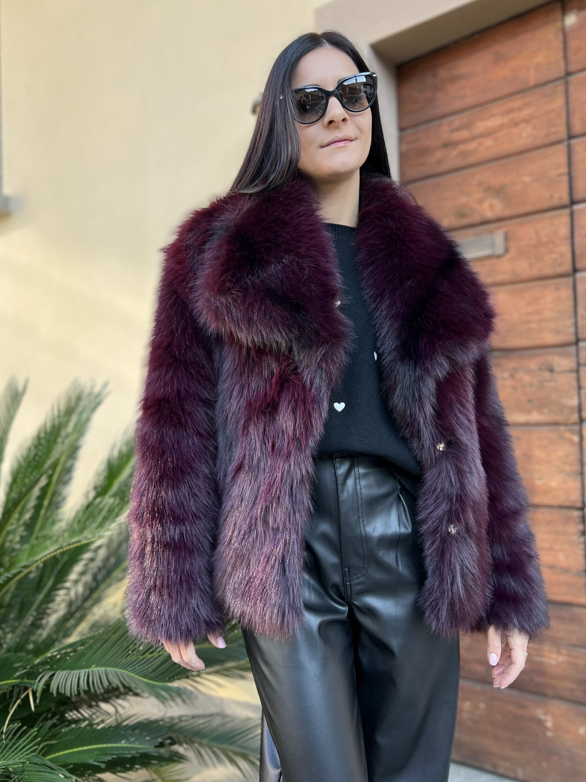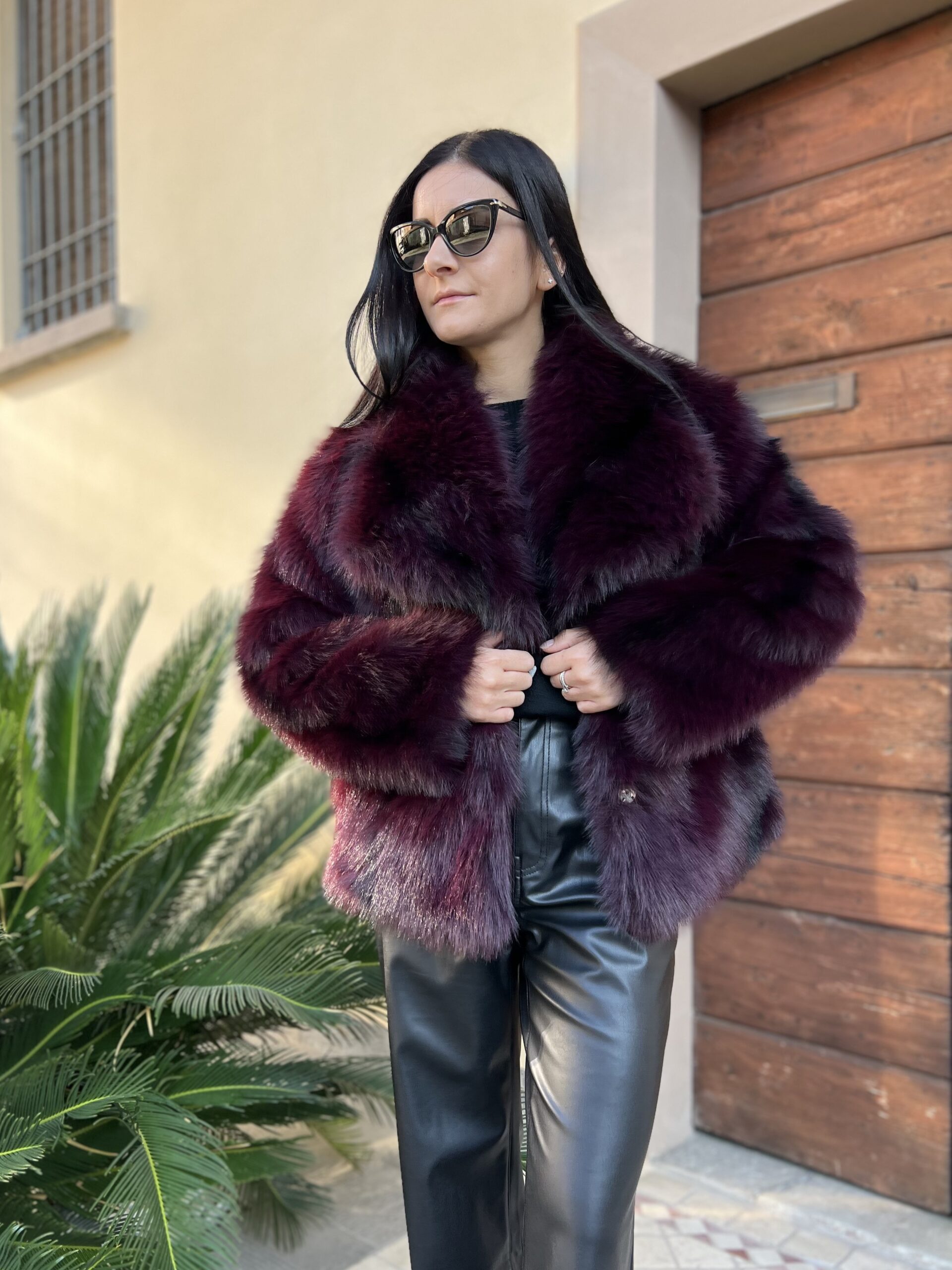 Pelliccia ecologica morbidissima, effetto leggermente sfumato nero. Dettaglio revers ampio e taglio dritto dalla vestibilità ampia. Taglia Xs/S per 38/42 e S/M per 42/46.