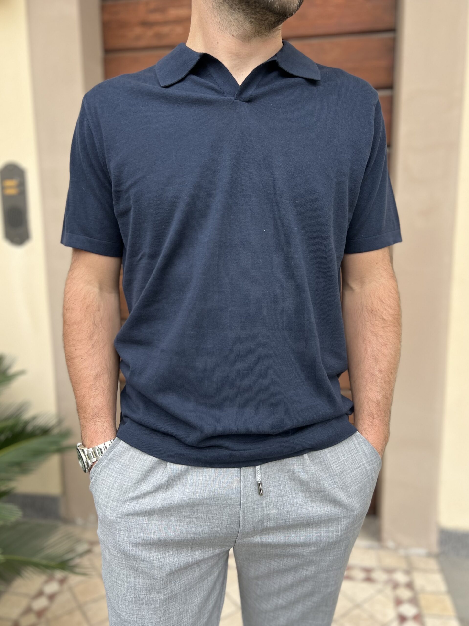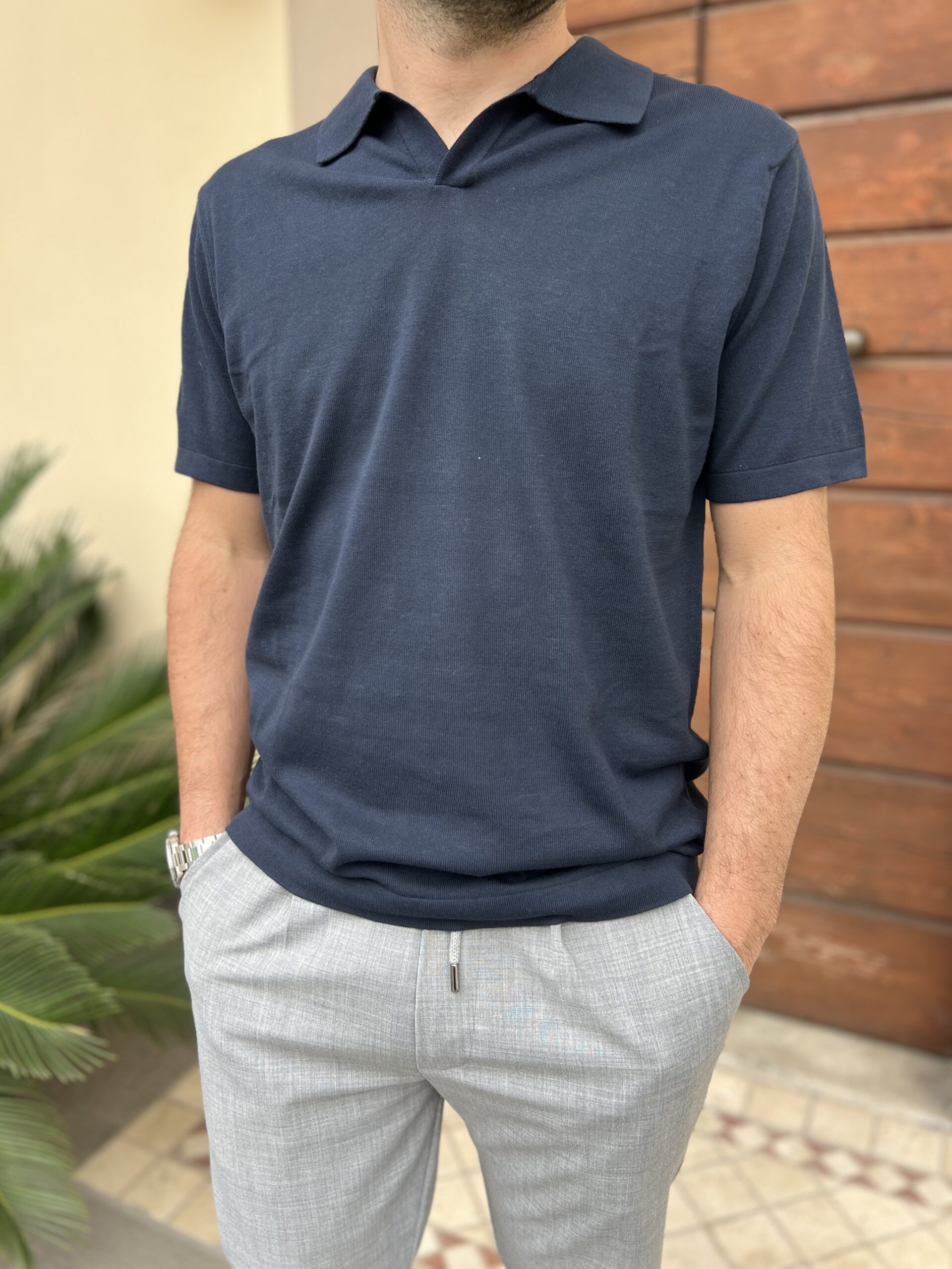 Polo in filo leggerissimo di puro cotone, modello regular con colletto classico.