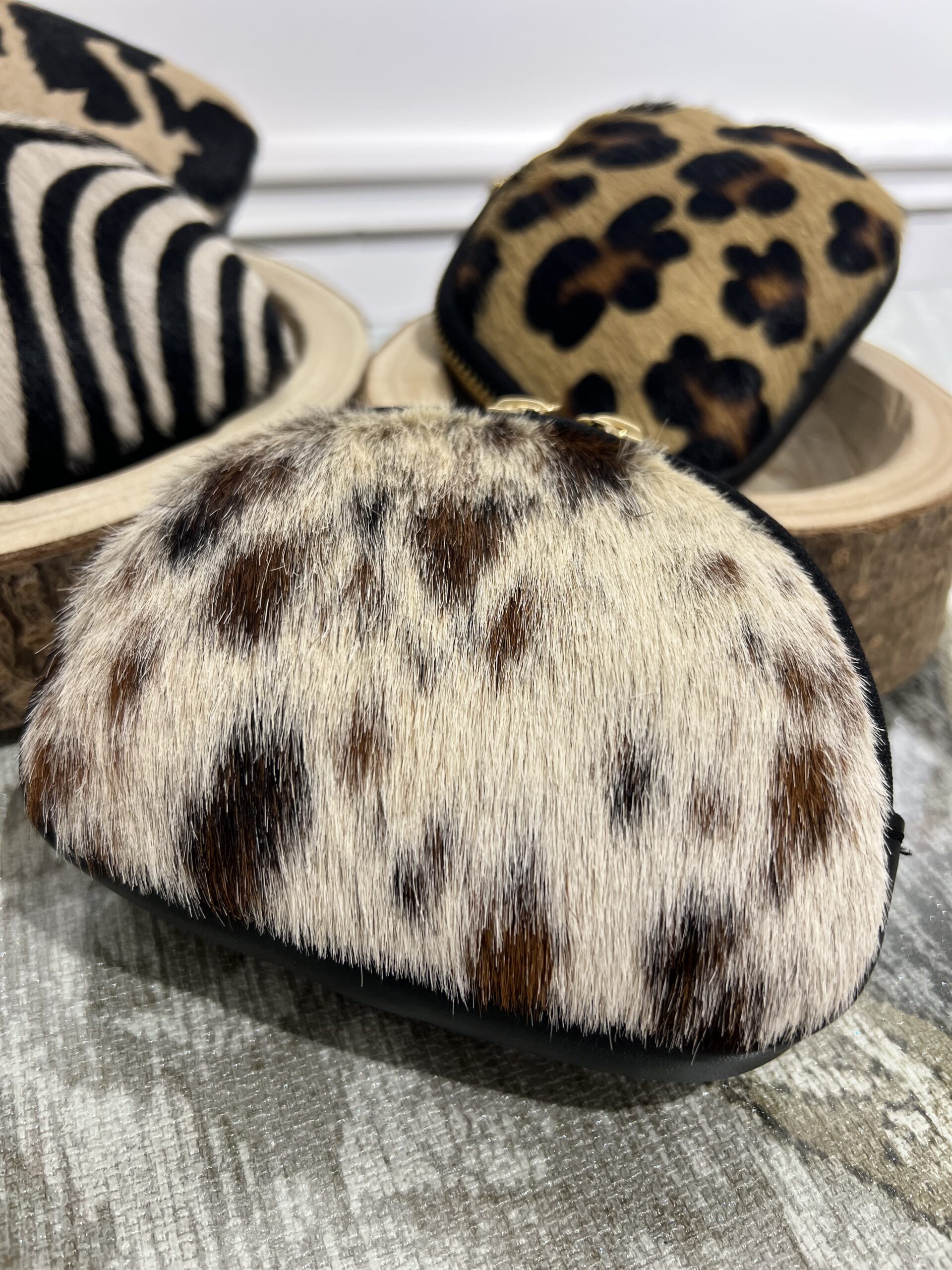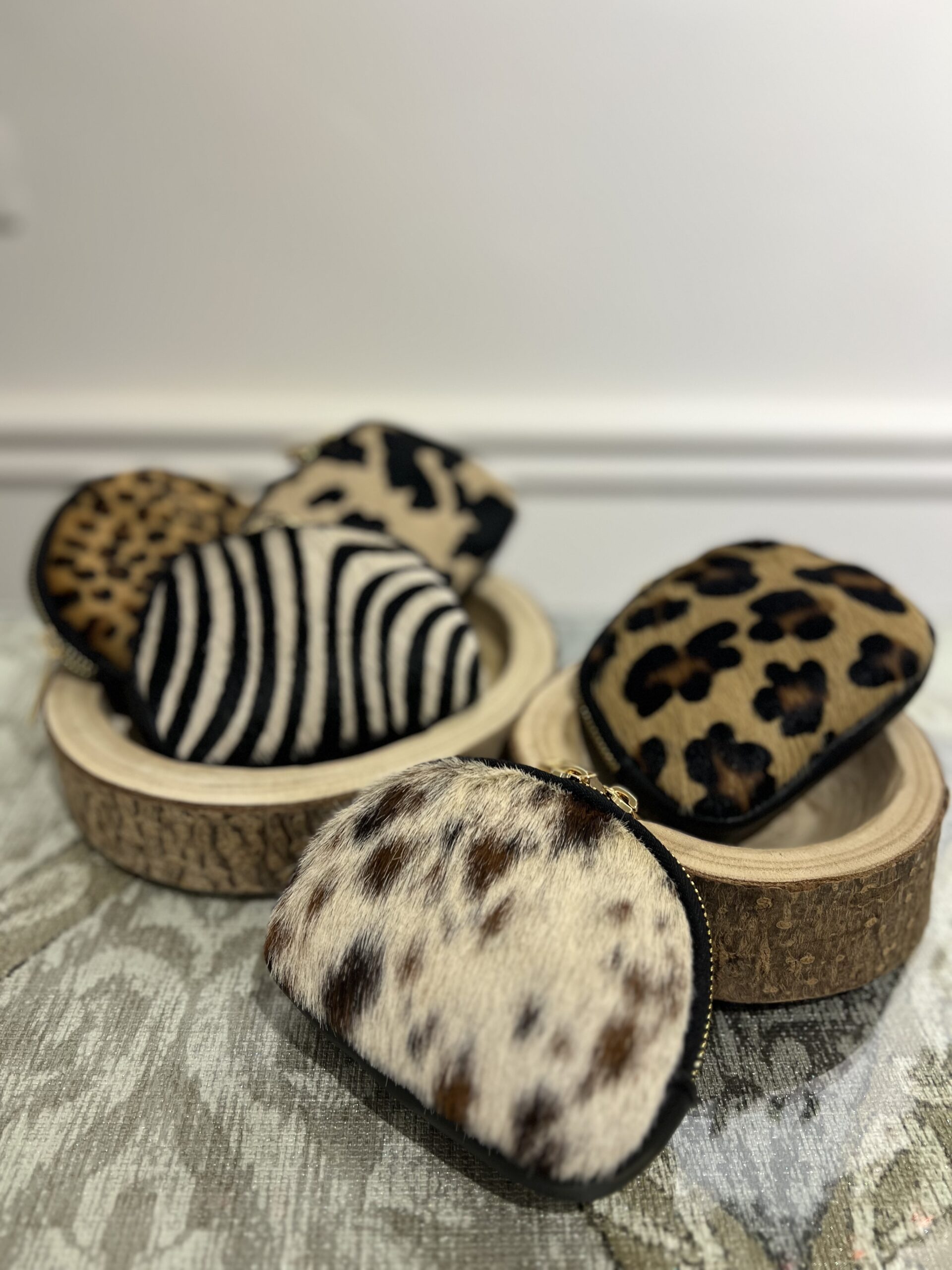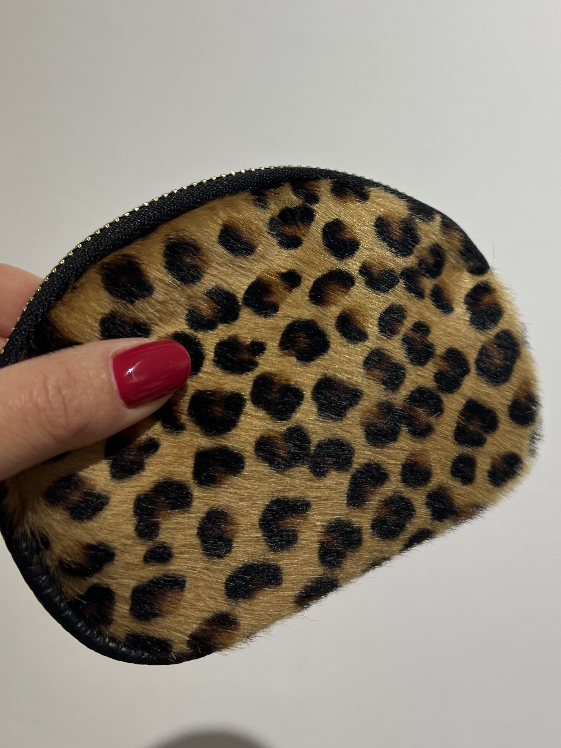 Mini pochette in vera pelle e cavallino con chiusura zip, misure: 15 cm, 10 cm.