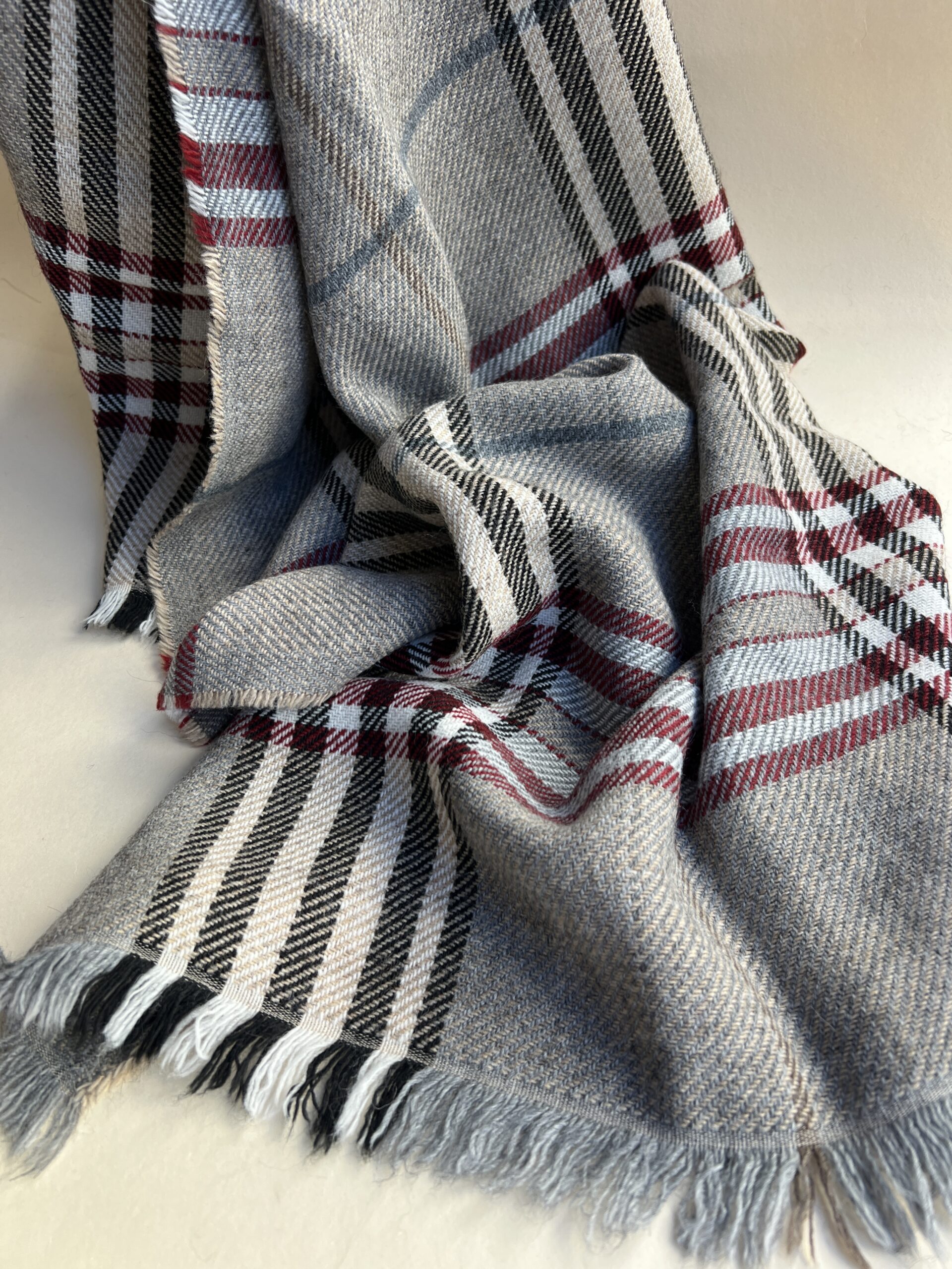 Sciarpa in misto lana (10%) e alpaca (5%) a fantasia.
