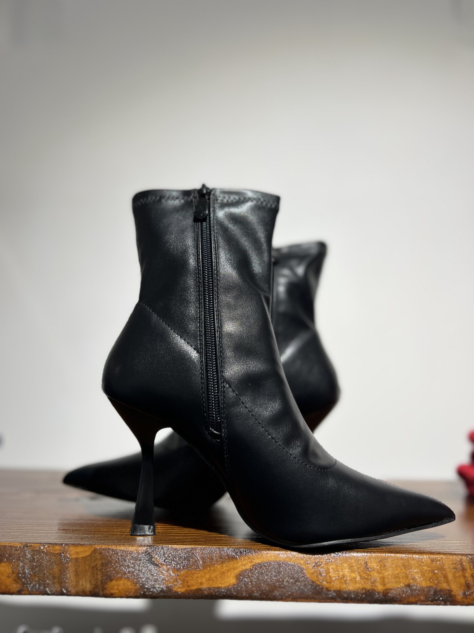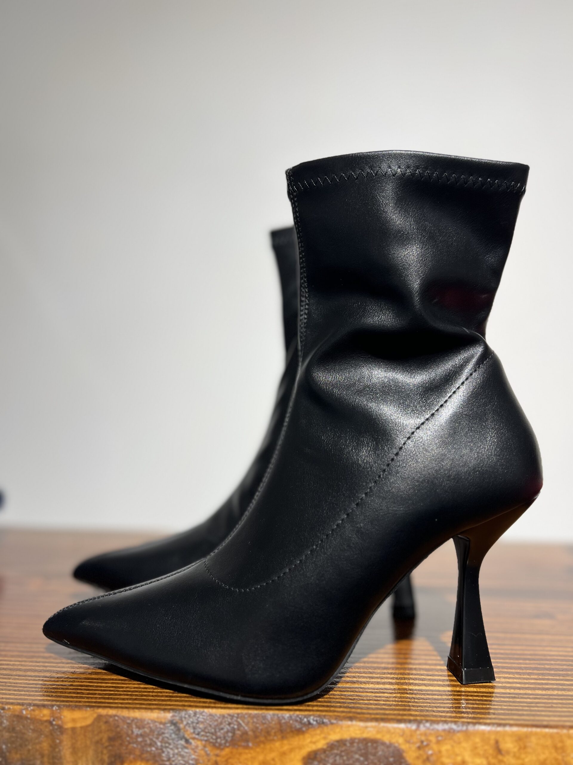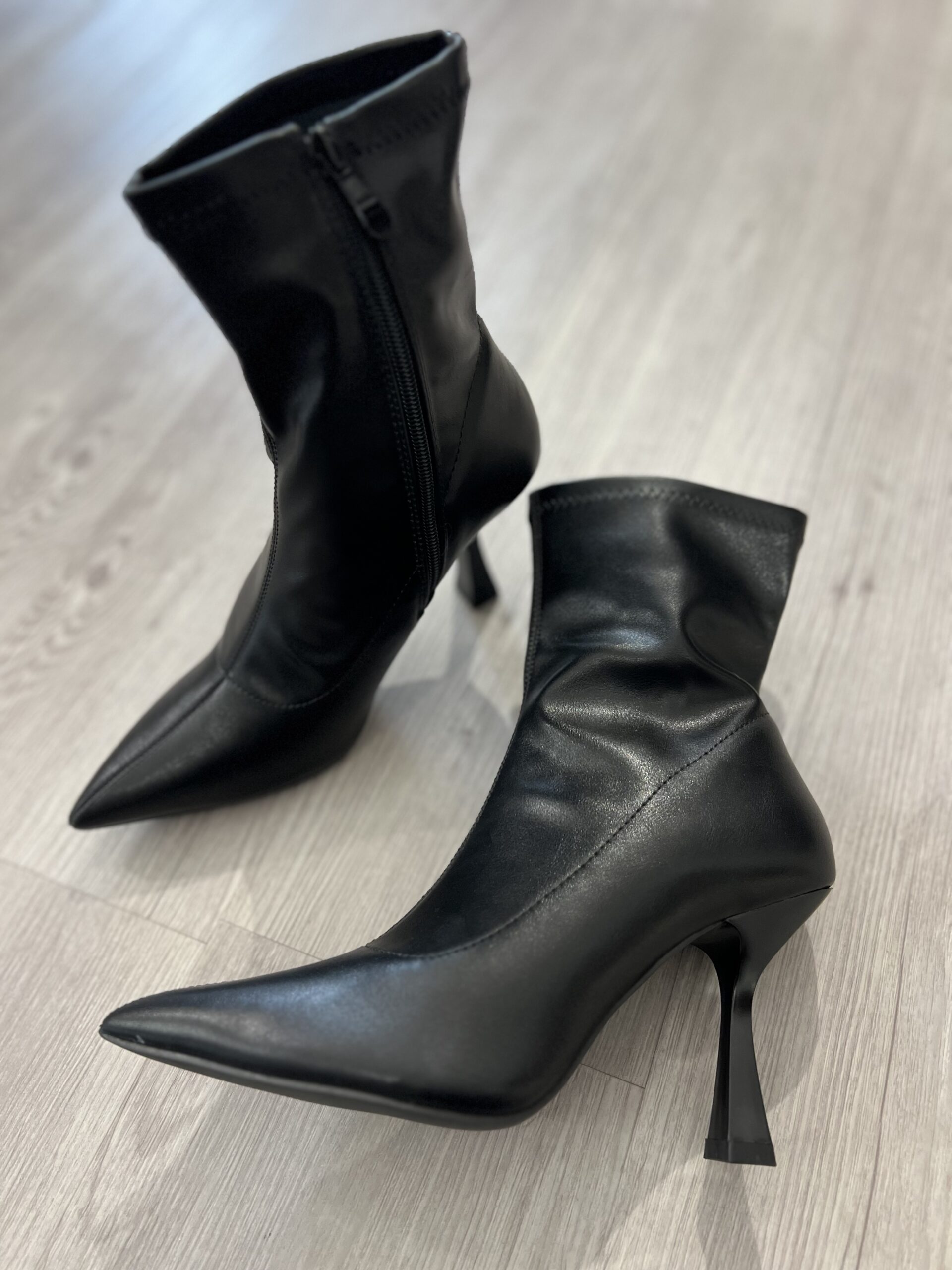 Stivaletto in ecopelle con tacco comodo a rocchetto altezza 10 cm. Chiusura zip, calzata regolare.