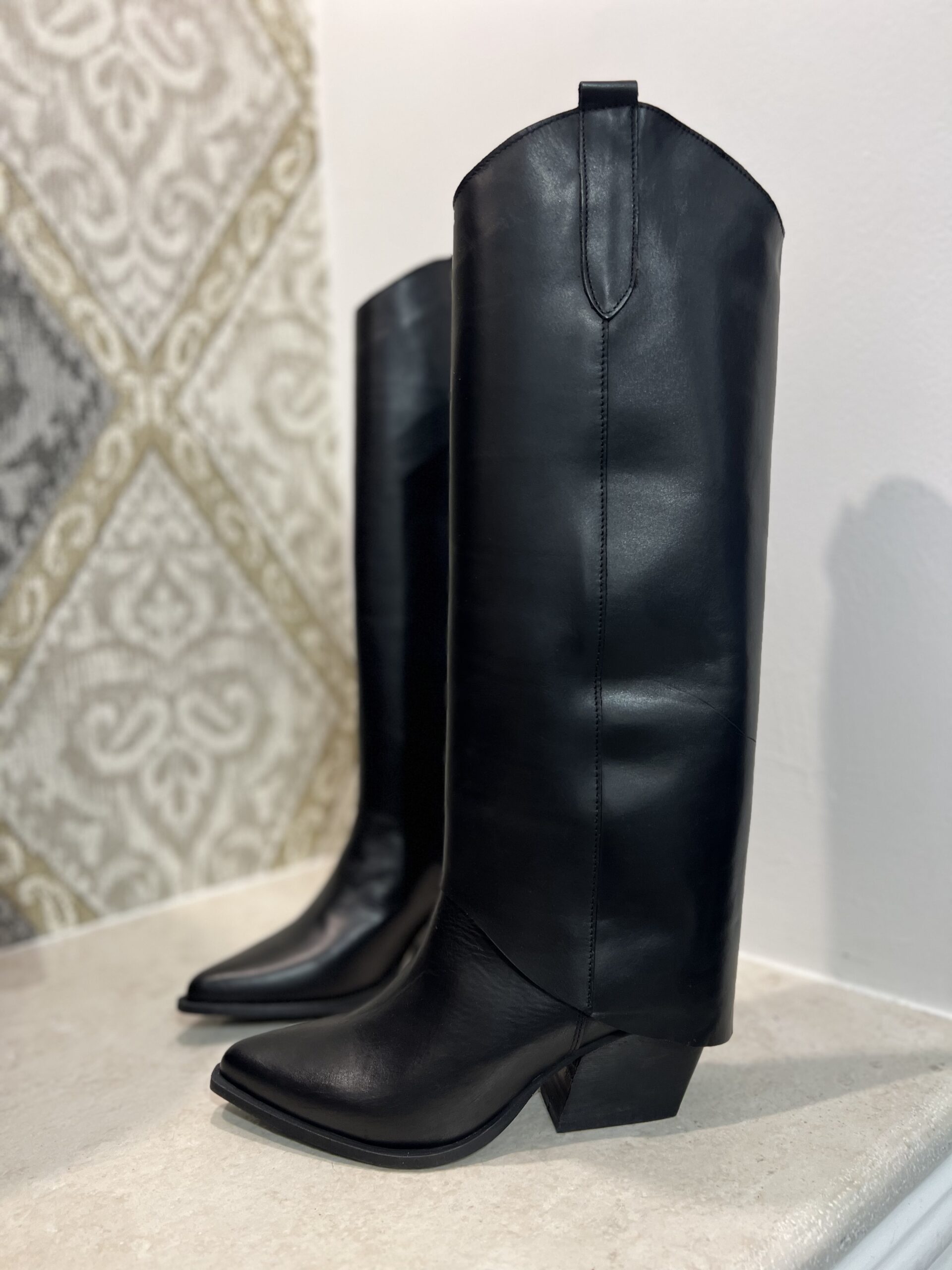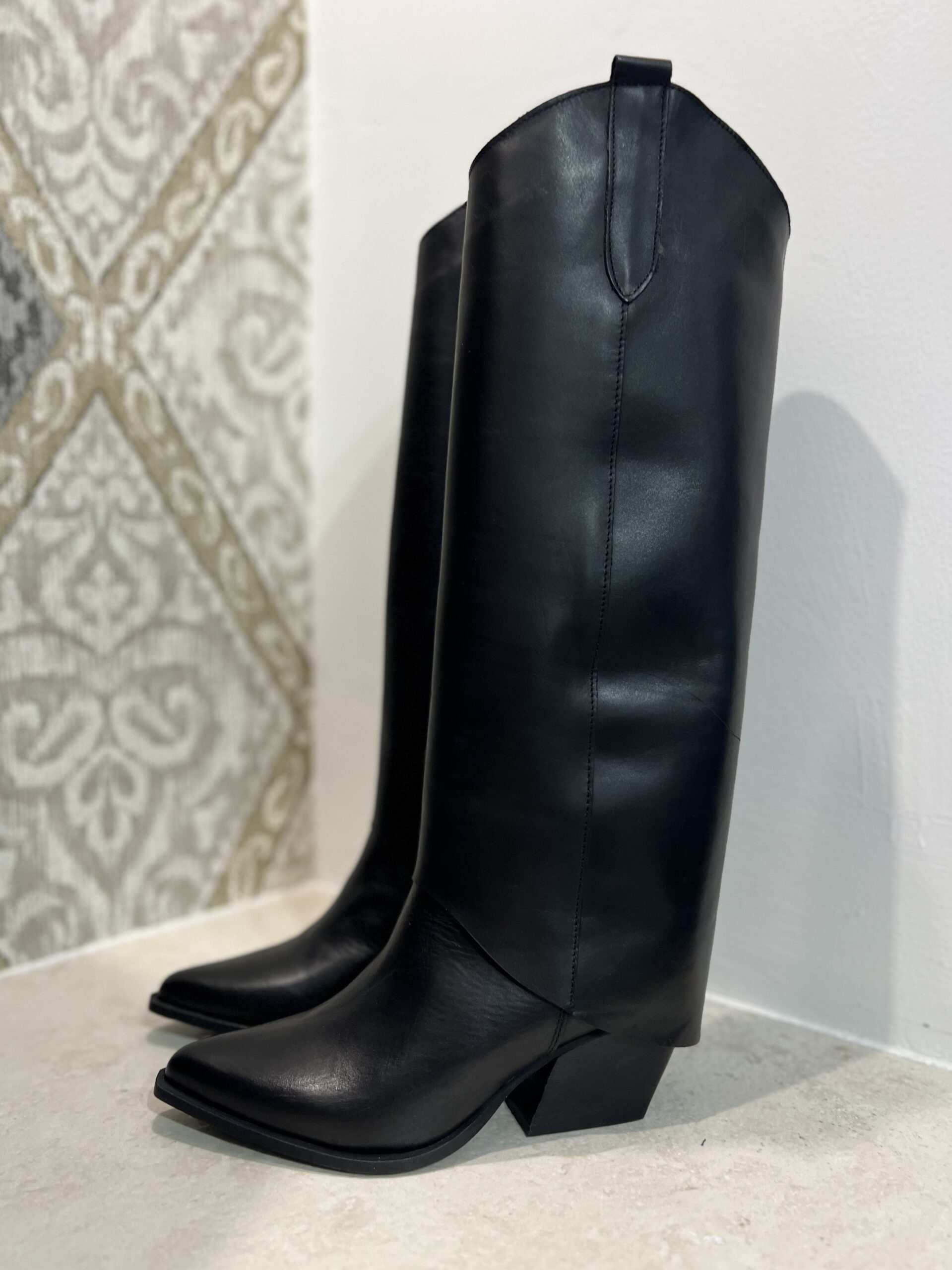 Texano nero in pelle