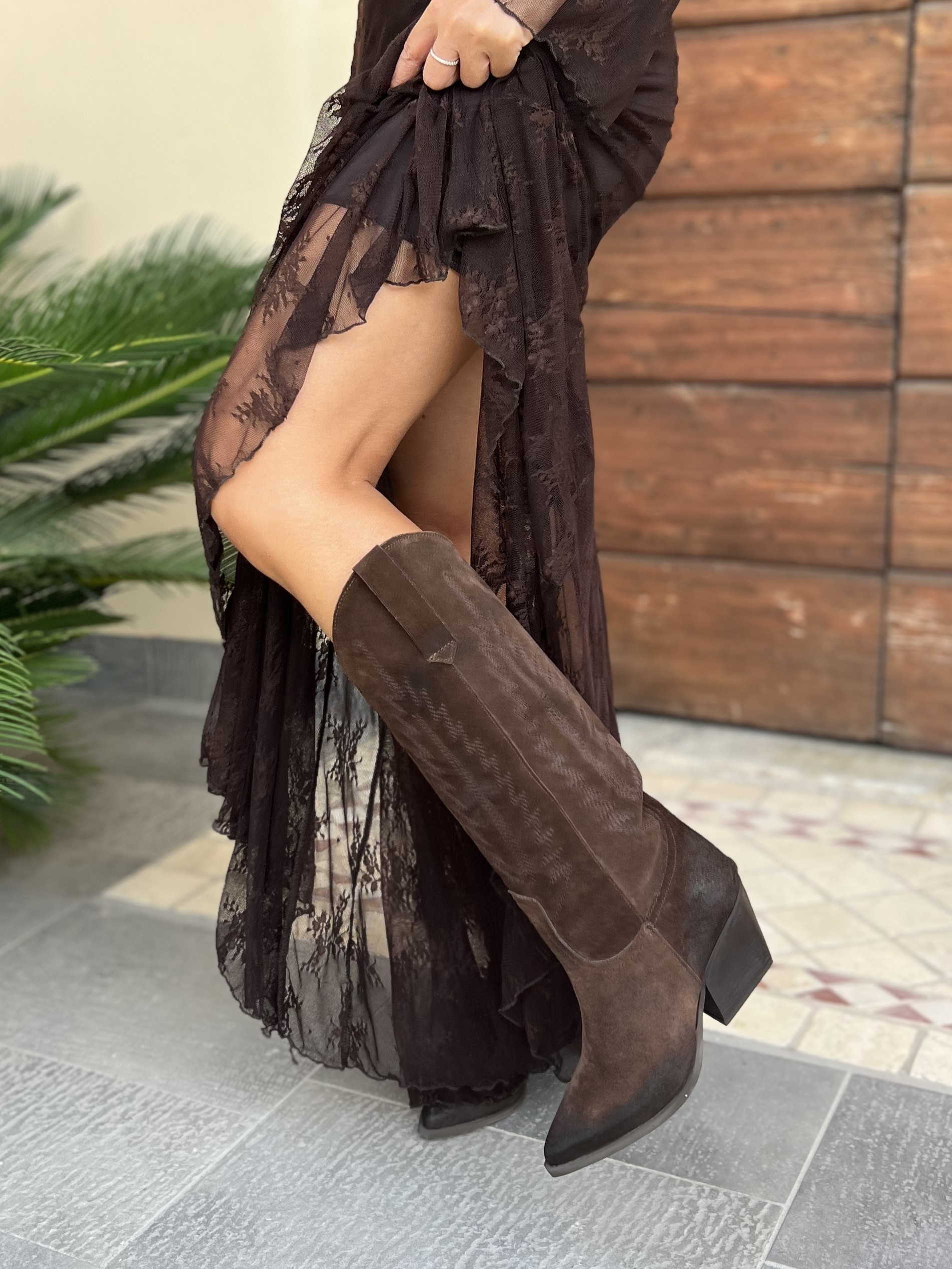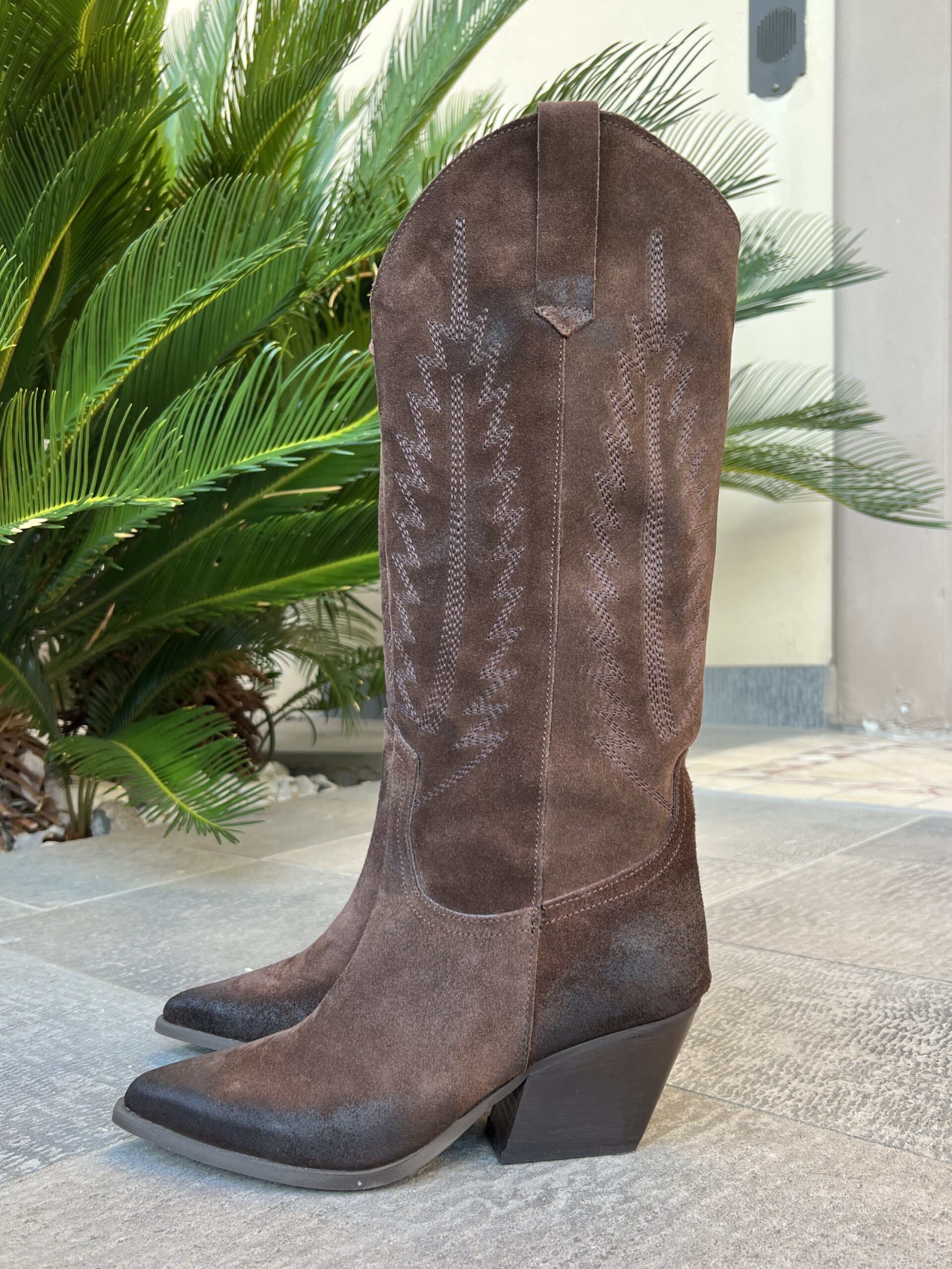 Texano in vera pelle, modello con ricami e comodo tacco alto 6 cm. Calzata regolare.